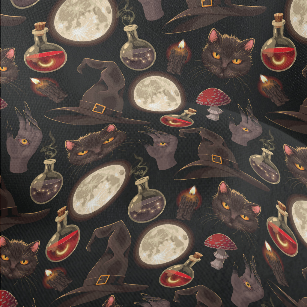 巫婆帽黑貓鬼手藥水竹節麻(幅寬150公分)
