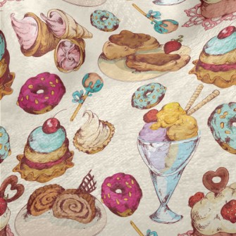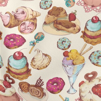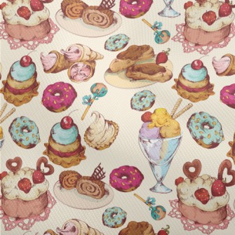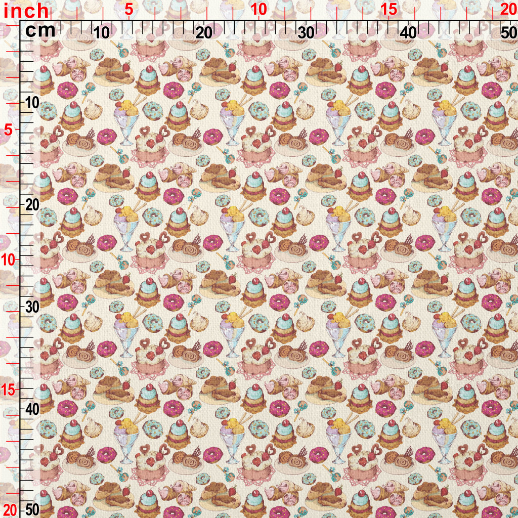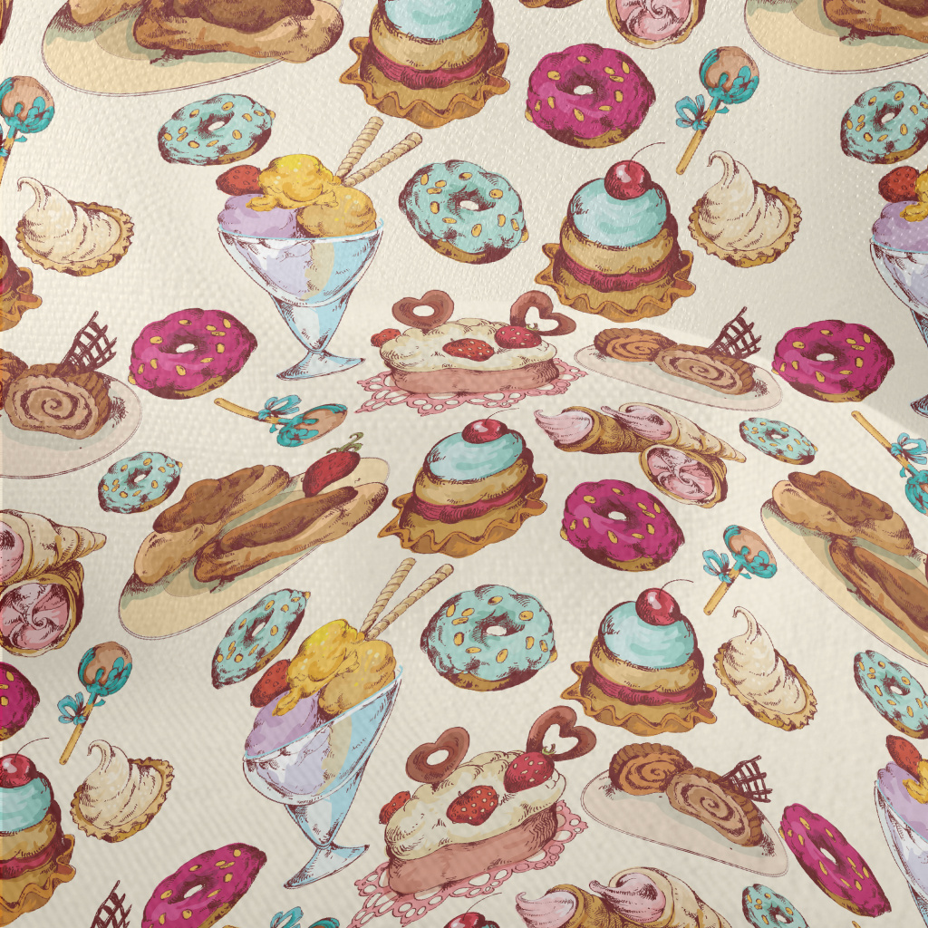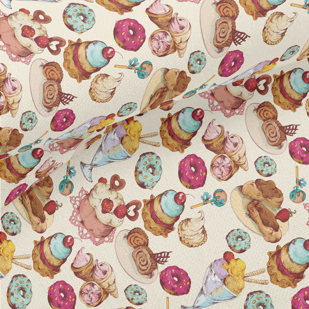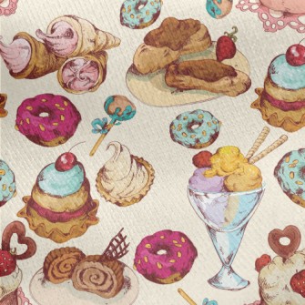塗鴉各式甜點蛋糕竹節麻(幅寬150公分)