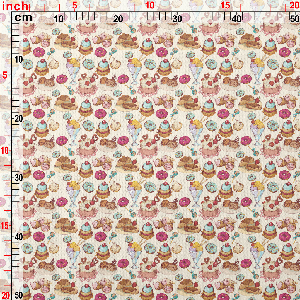塗鴉各式甜點蛋糕仿棉布(幅寬150公分)