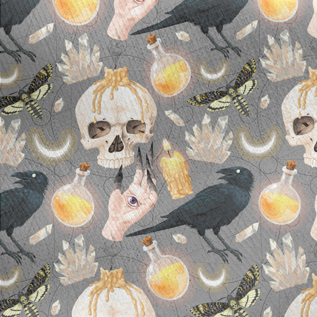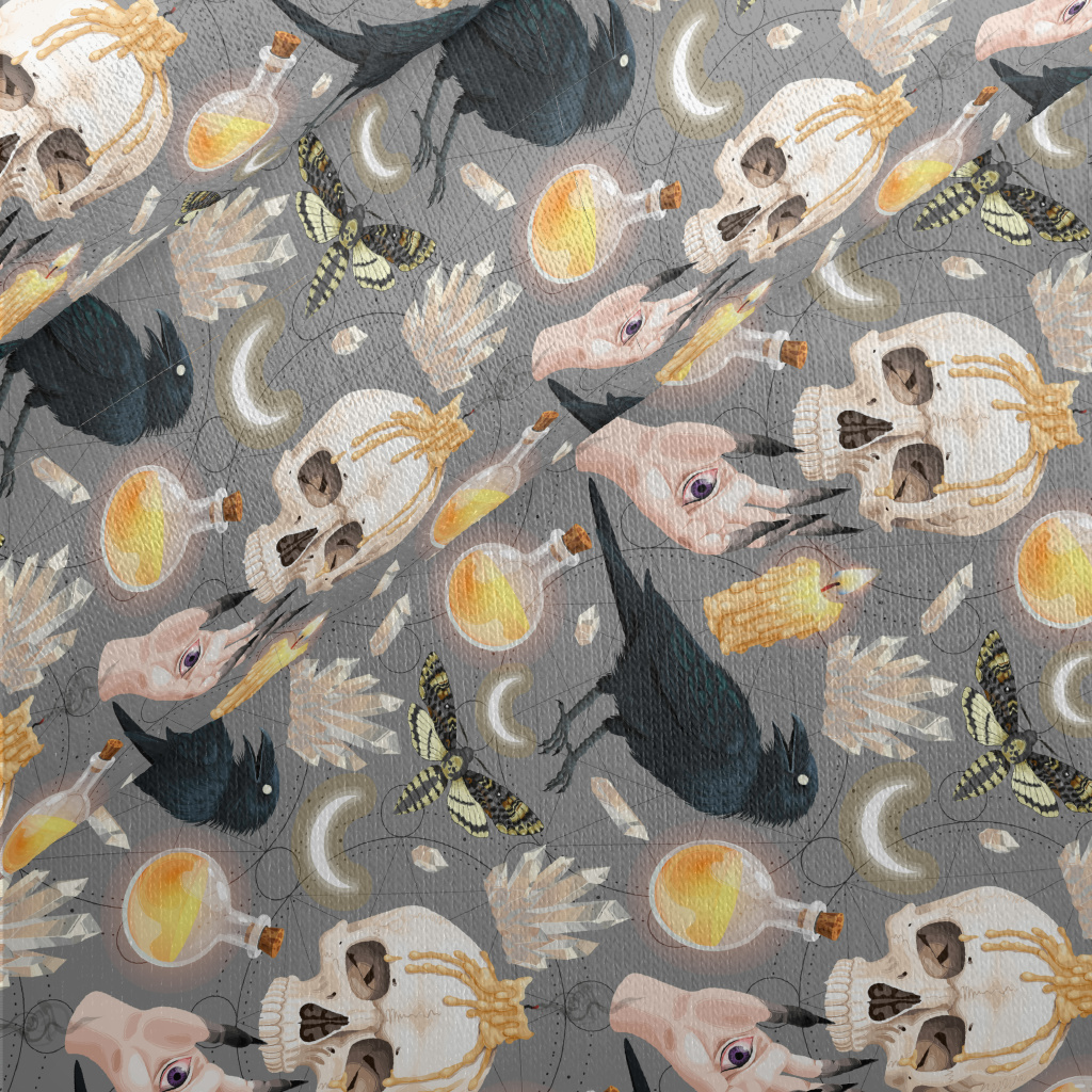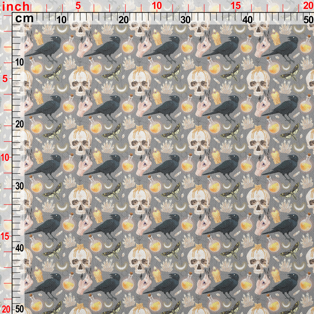 鬼手頭骨烏鴉蠟燭刷毛布(幅寬150公分)