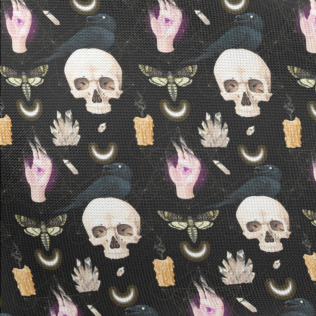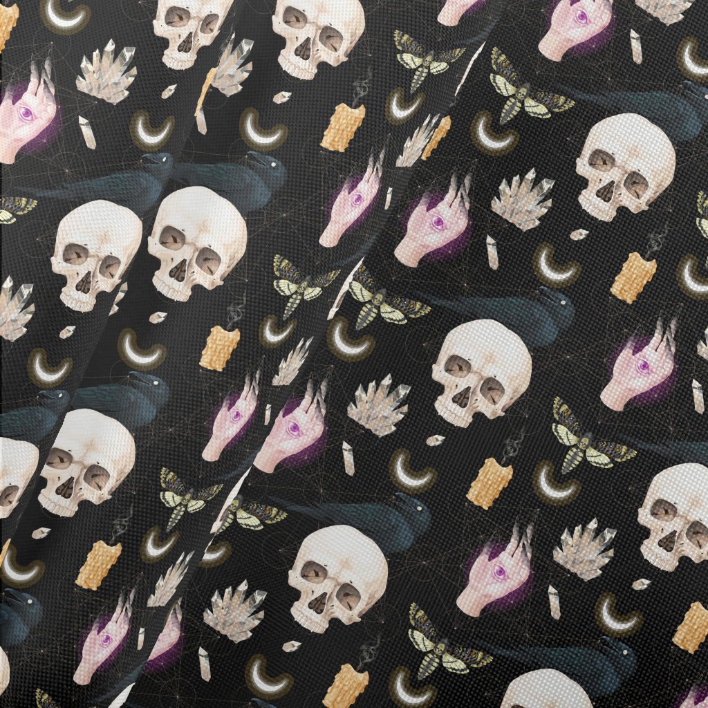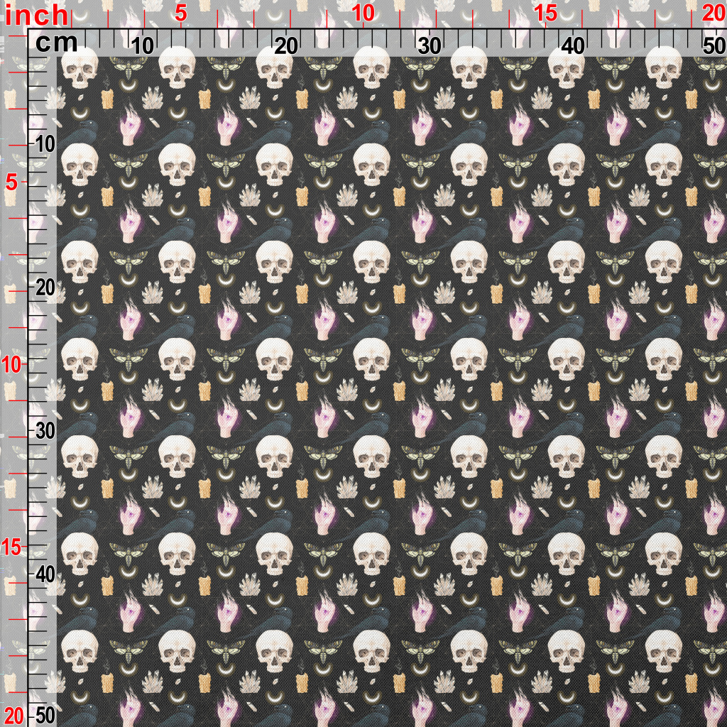 頭骨蠟燭烏鴉昆蟲鬼手春亞紡(幅寬160公分)