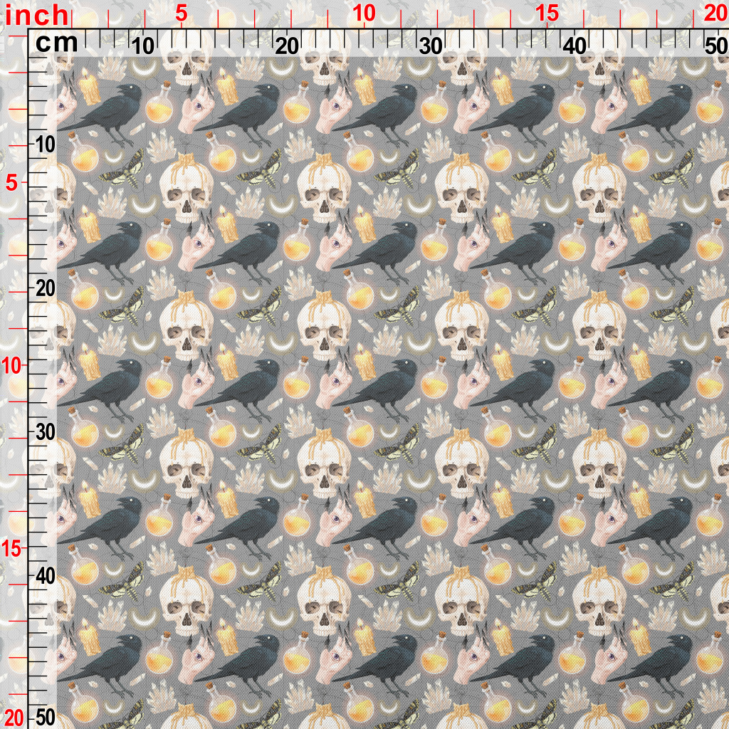 鬼手頭骨烏鴉蠟燭春亞紡(幅寬160公分)