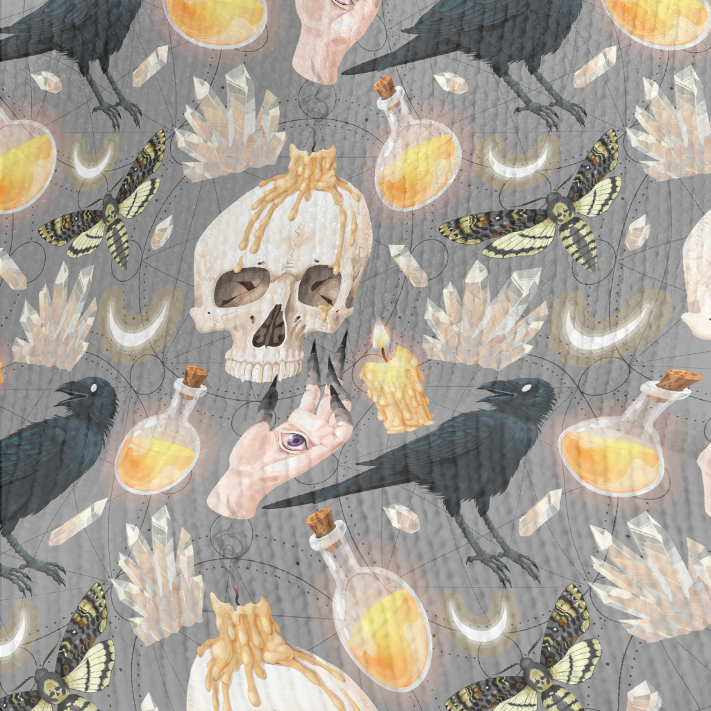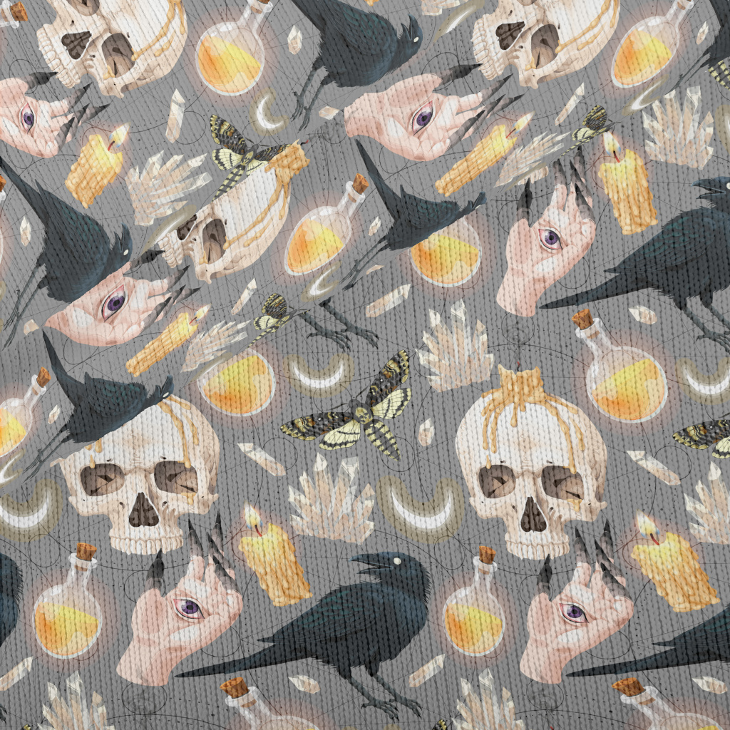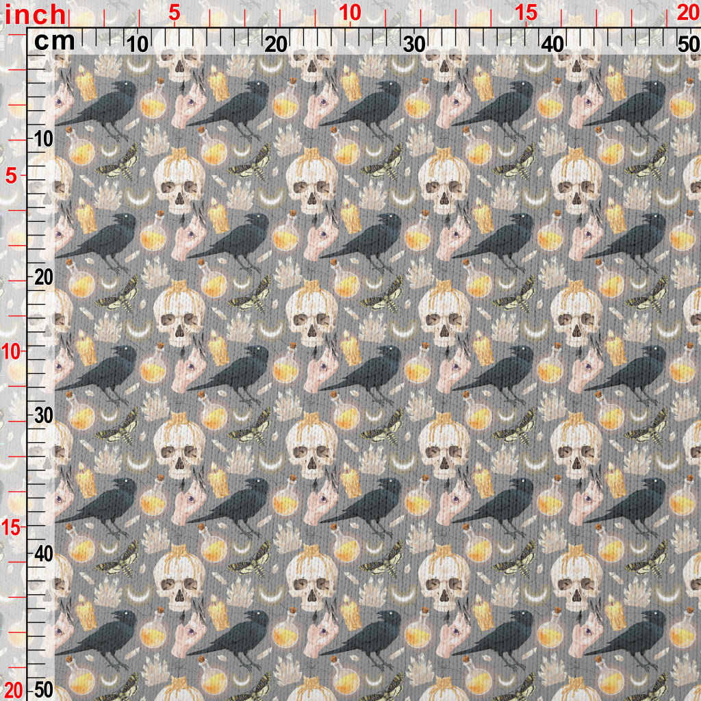 鬼手頭骨烏鴉蠟燭仿毛衣布(幅寬150公分)