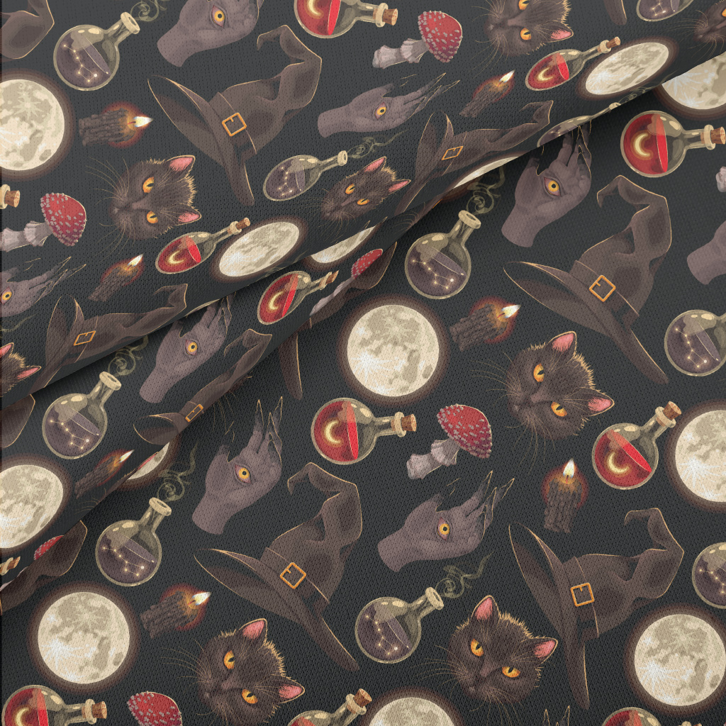 巫婆帽黑貓鬼手藥水薄棉布(幅寬150公分)