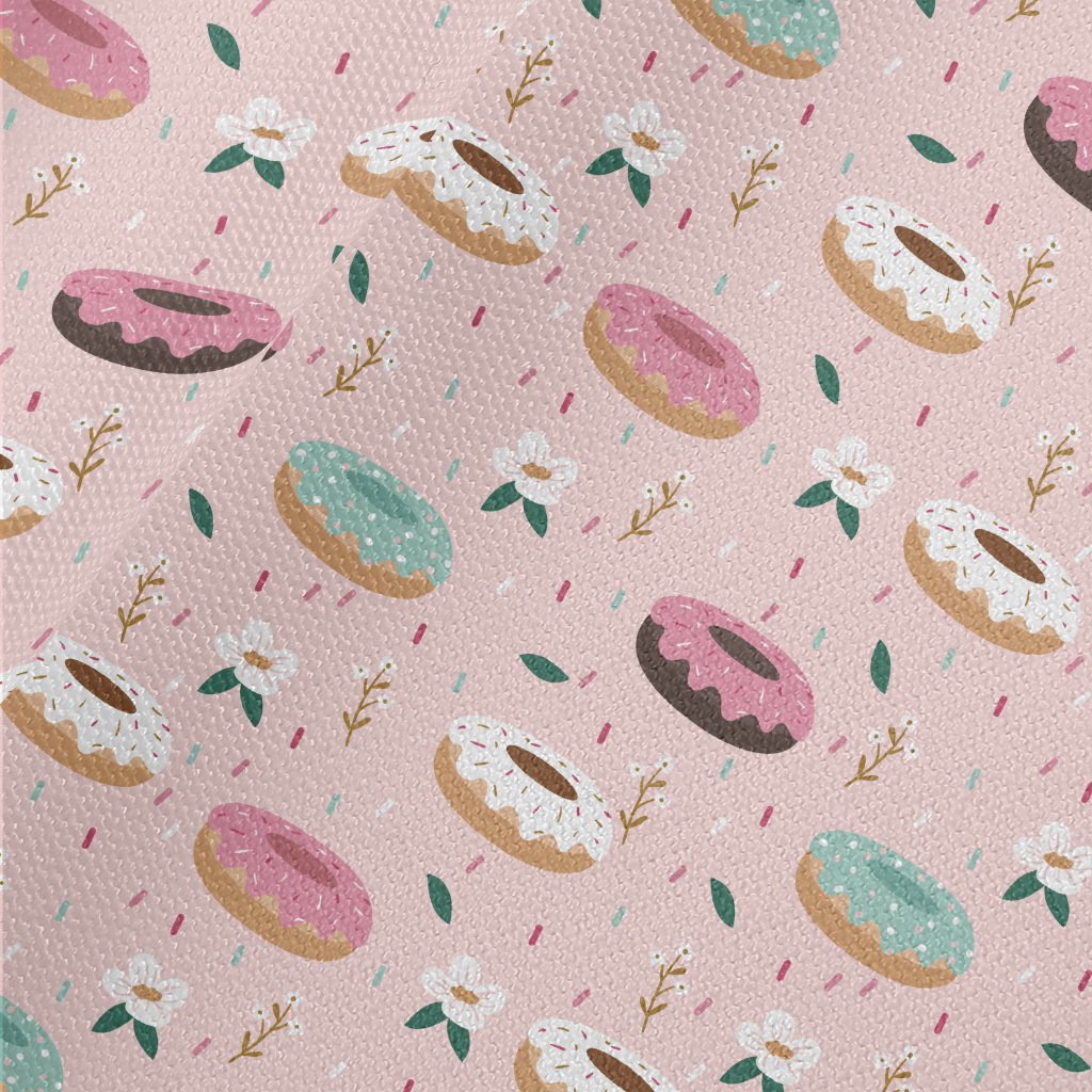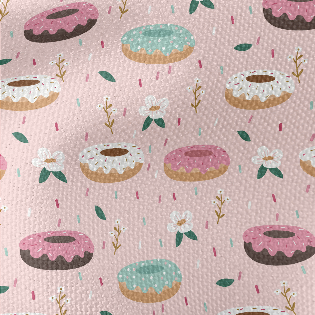 彩色甜甜圈與花朵帆布(幅寬150公分)