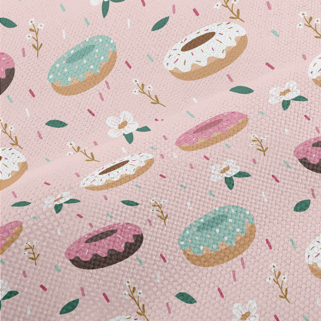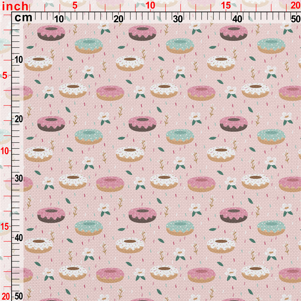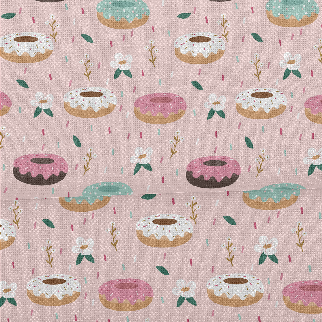 彩色甜甜圈與花朵麻布(幅寬150公分)