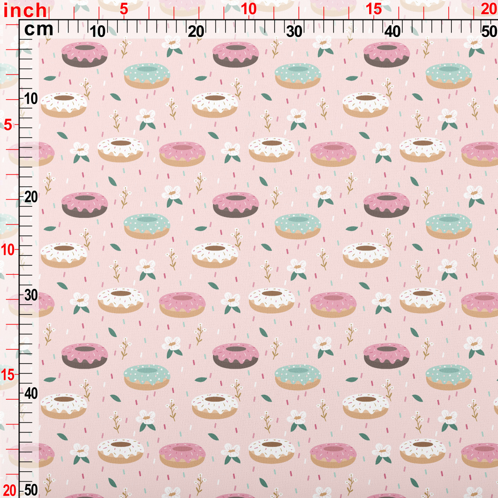 彩色甜甜圈與花朵羅馬布(幅寬160公分)