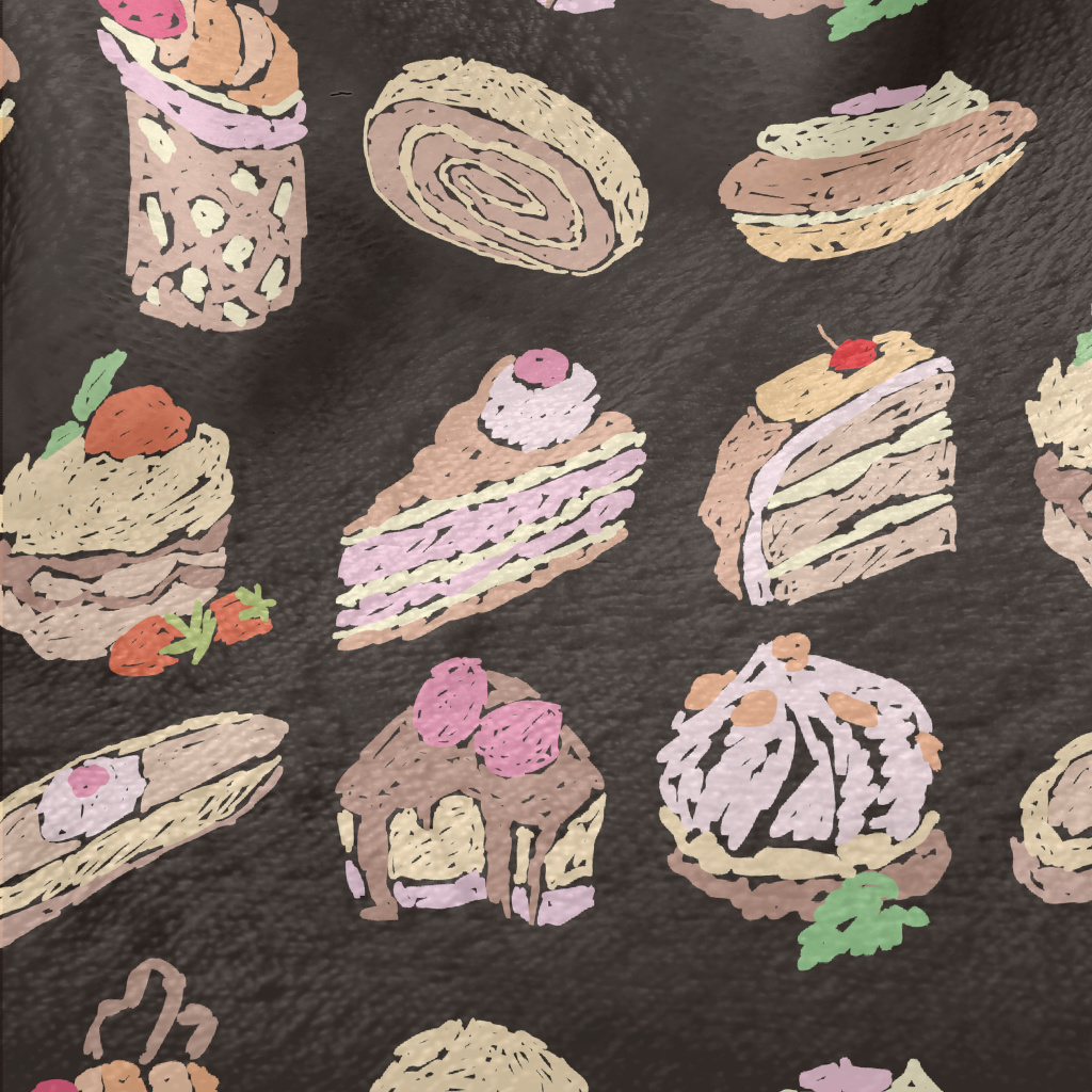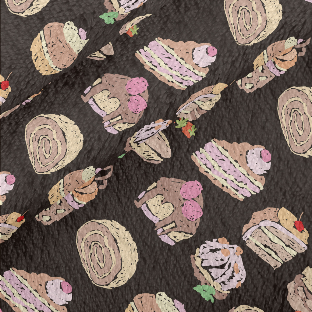 塗鴉手繪蛋糕甜點法蘭絨(幅寬150公分)