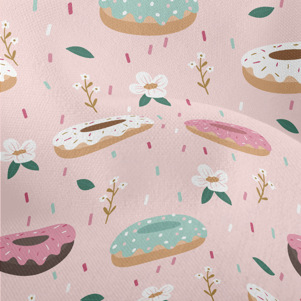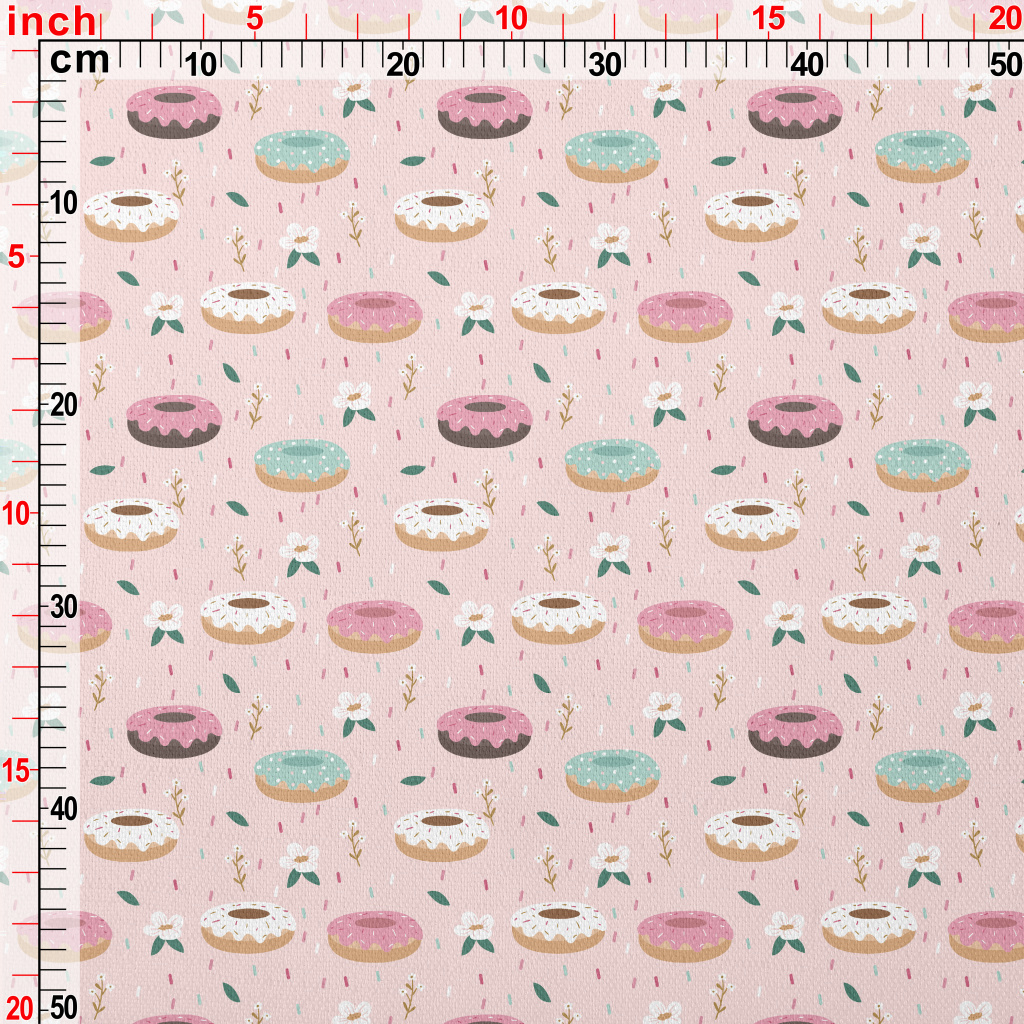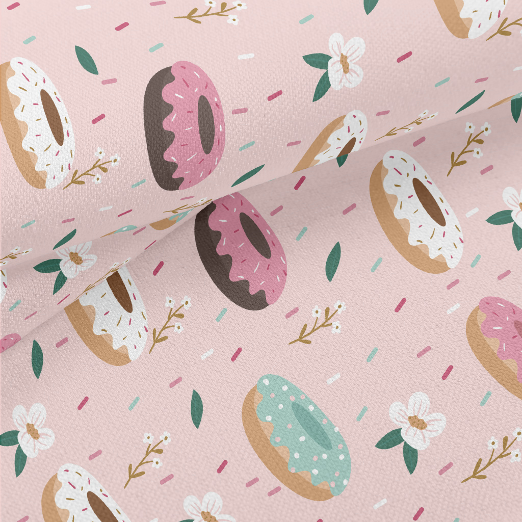 彩色甜甜圈與花朵竹節麻(幅寬150公分)