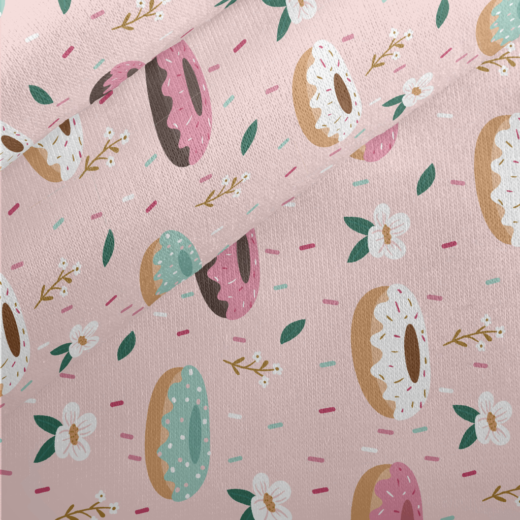 彩色甜甜圈與花朵刷毛布(幅寬150公分)