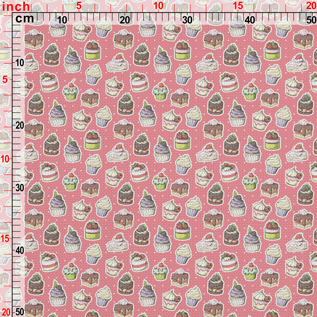 手繪各種風味杯子蛋糕麻布(幅寬150公分)