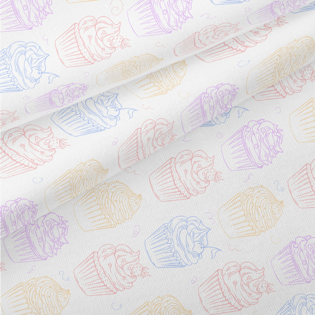 彩色線條杯子蛋糕仿棉布(幅寬150公分)