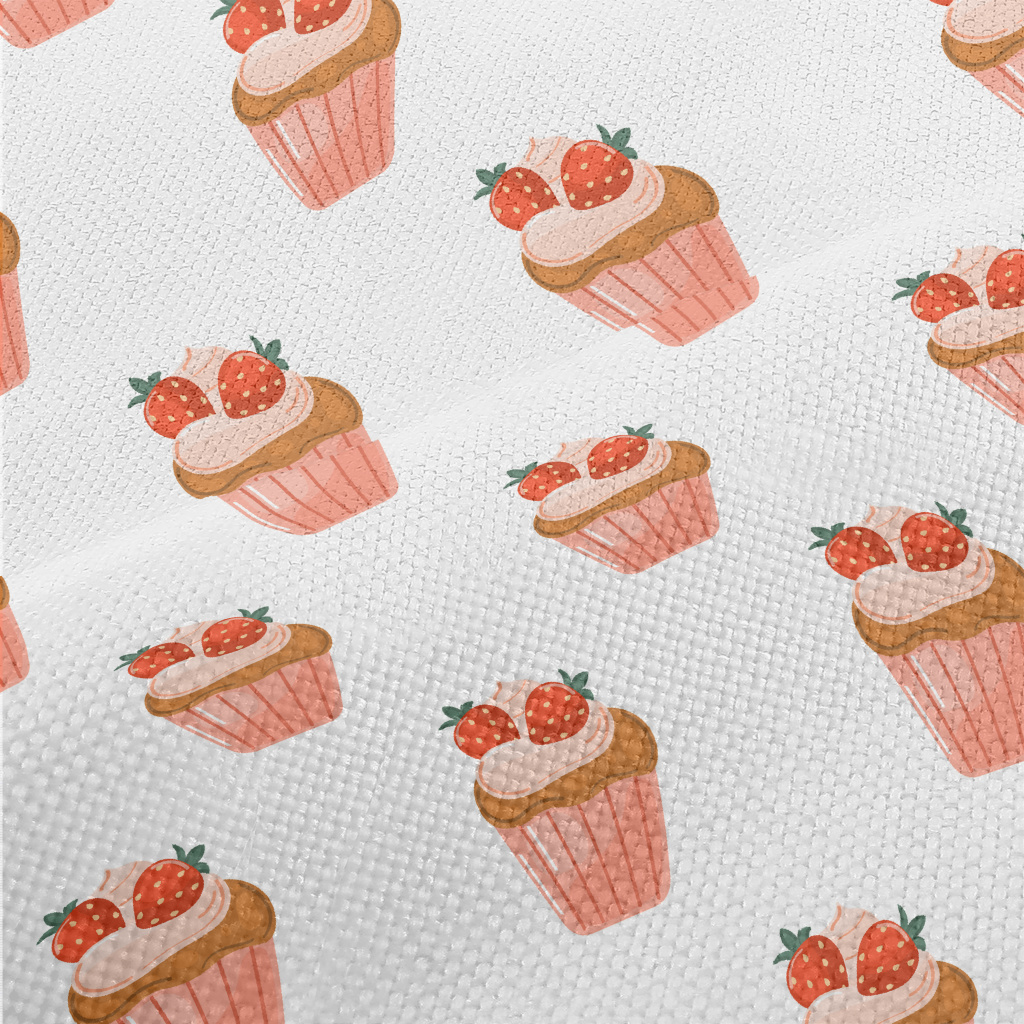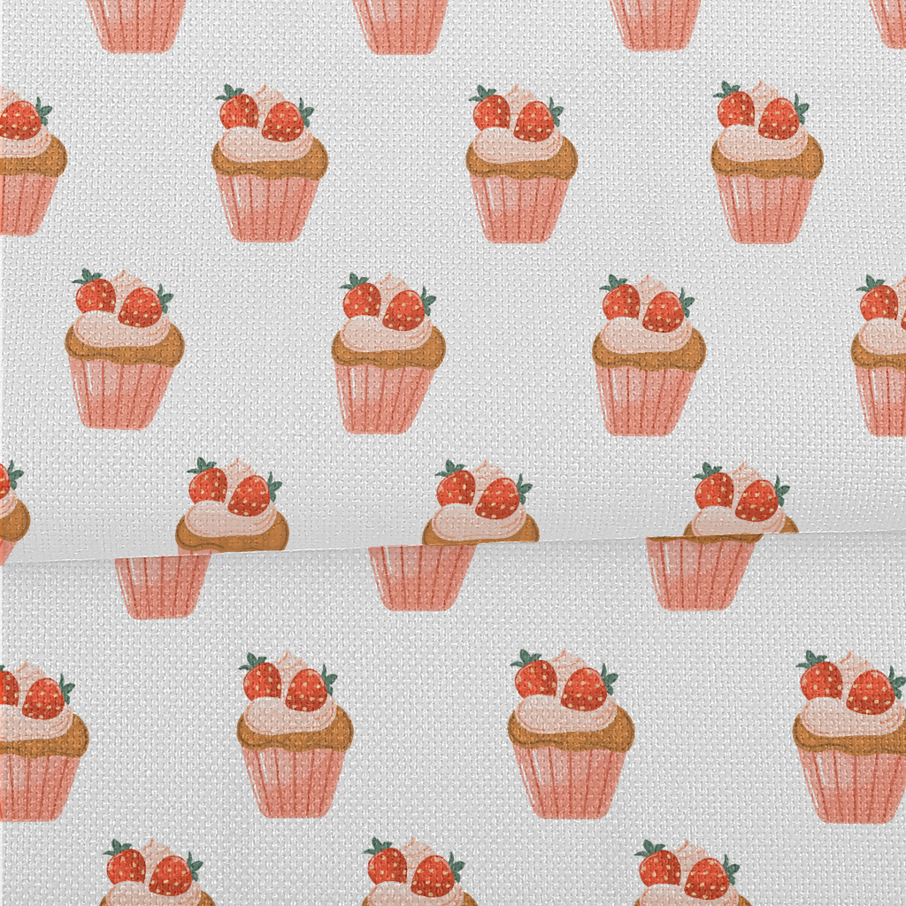 草莓粉色杯子蛋糕麻布(幅寬150公分)
