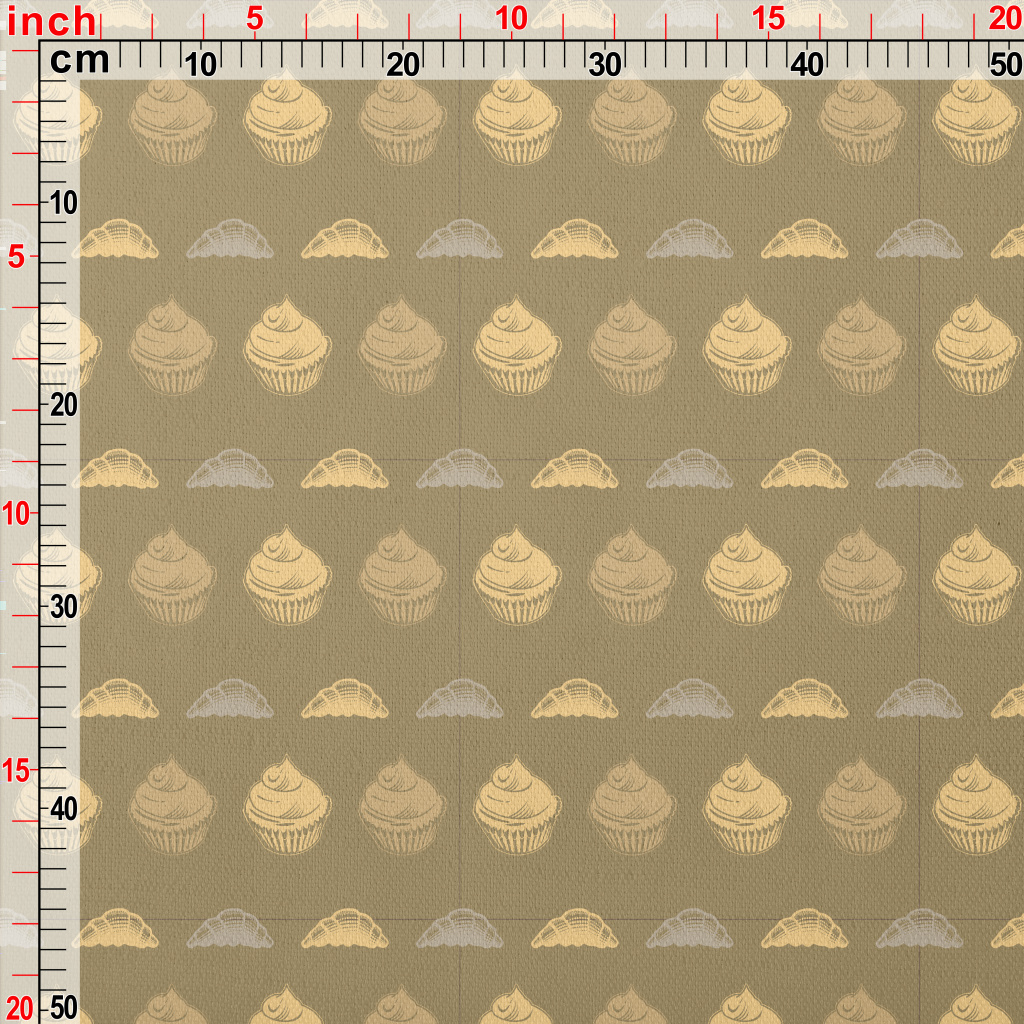 彩色剪影蛋糕和牛角麵包竹節麻(幅寬150公分)