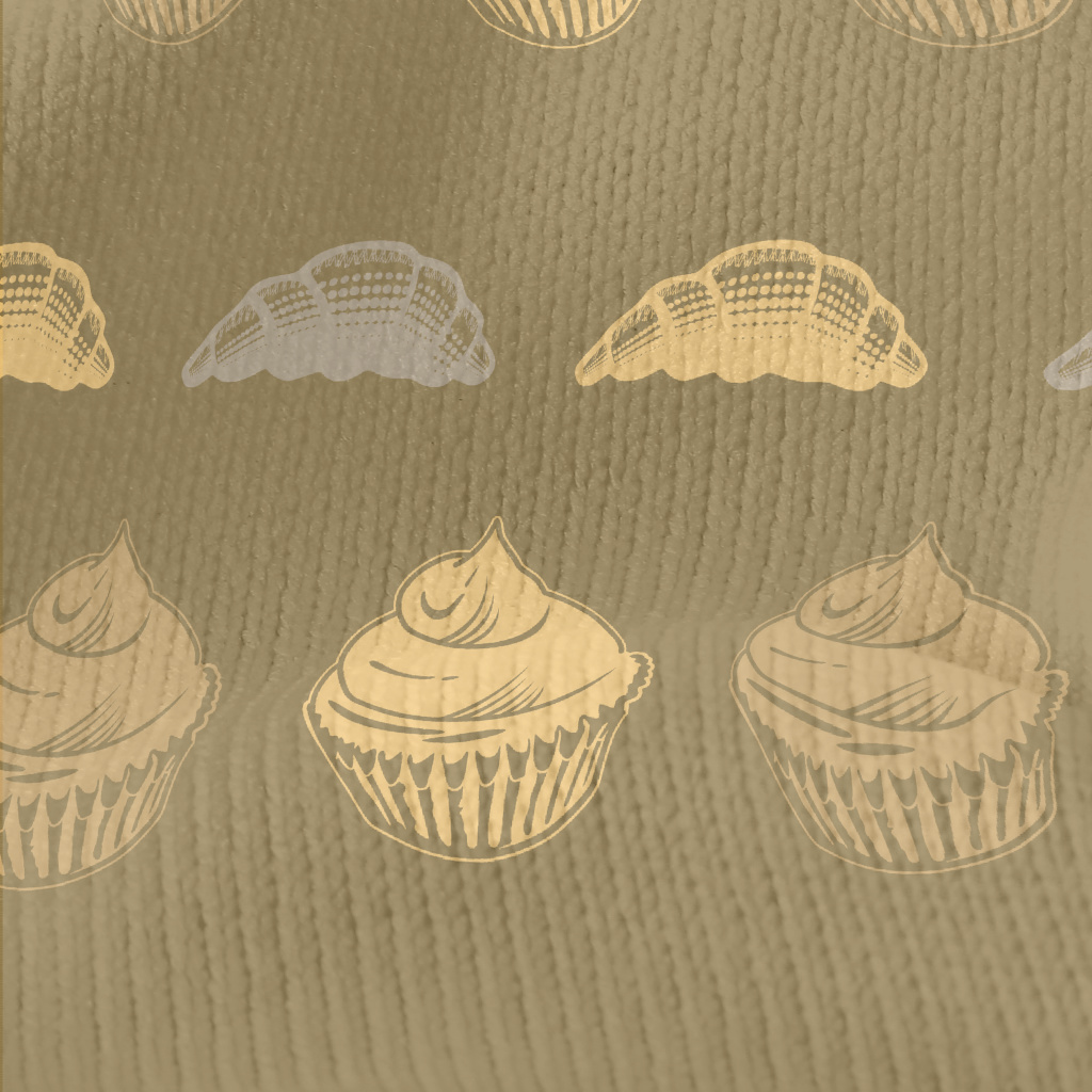 彩色剪影蛋糕和牛角麵包仿毛衣布(幅寬150公分)