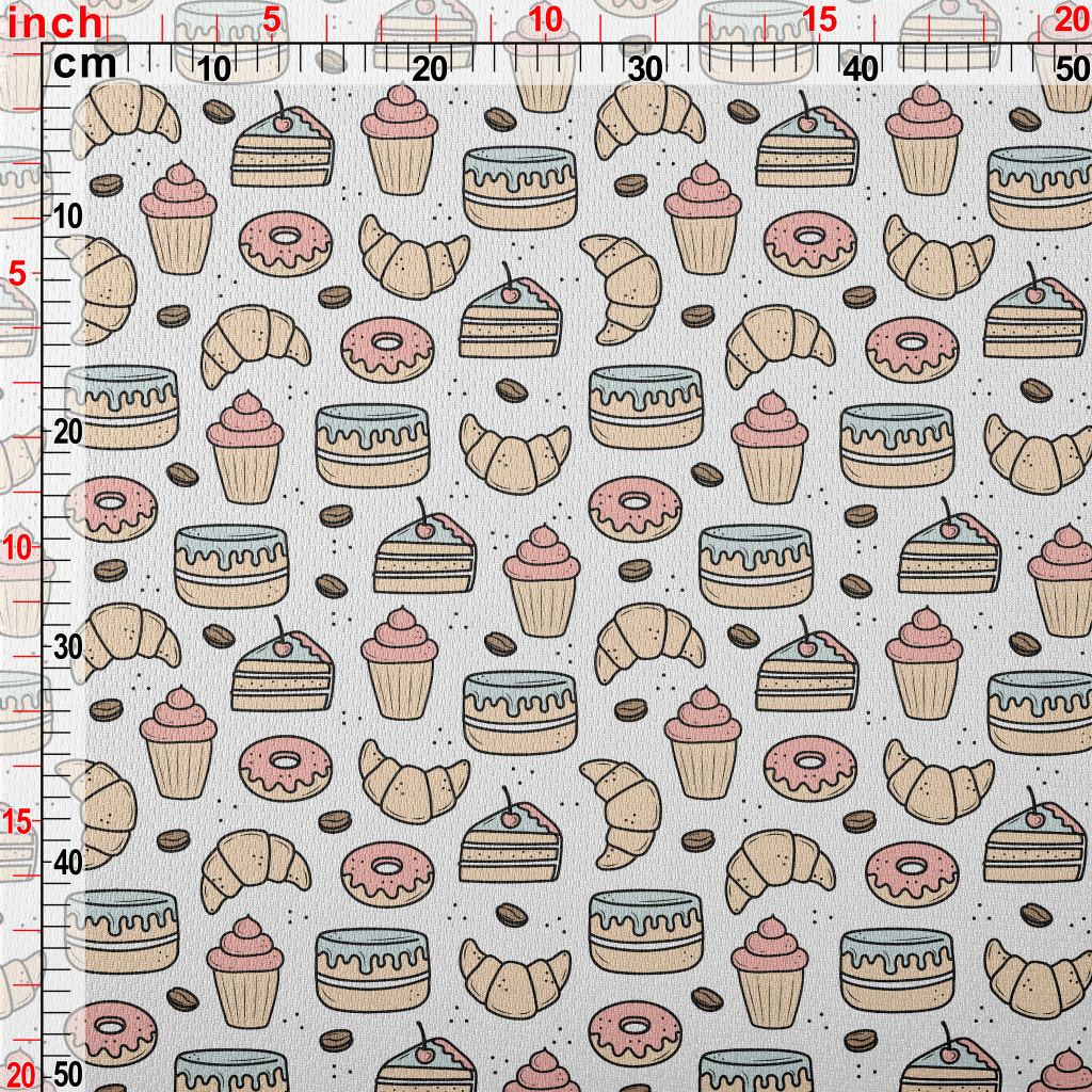 卡通蛋糕麵包咖啡豆鳥眼布(幅寬160公分)