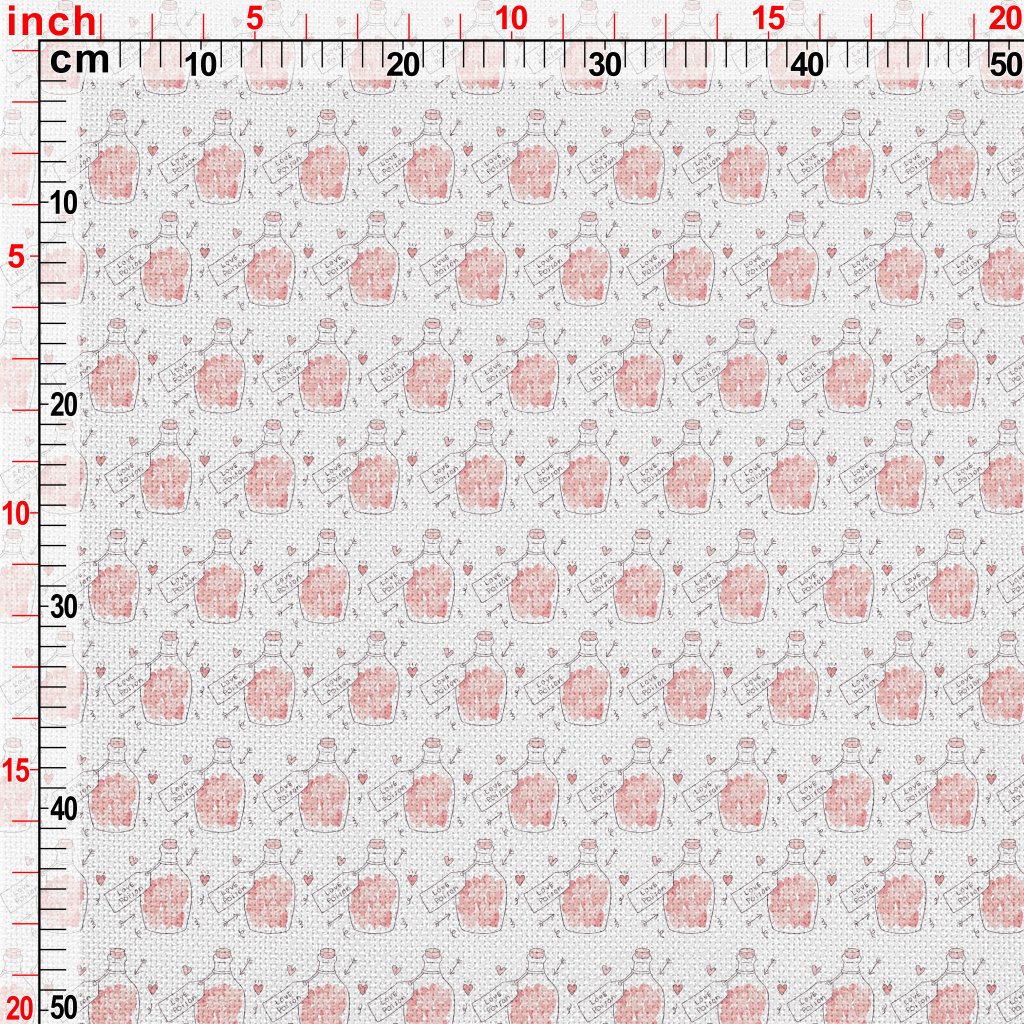 裝著粉色愛心的瓶子麻布(幅寬150公分)