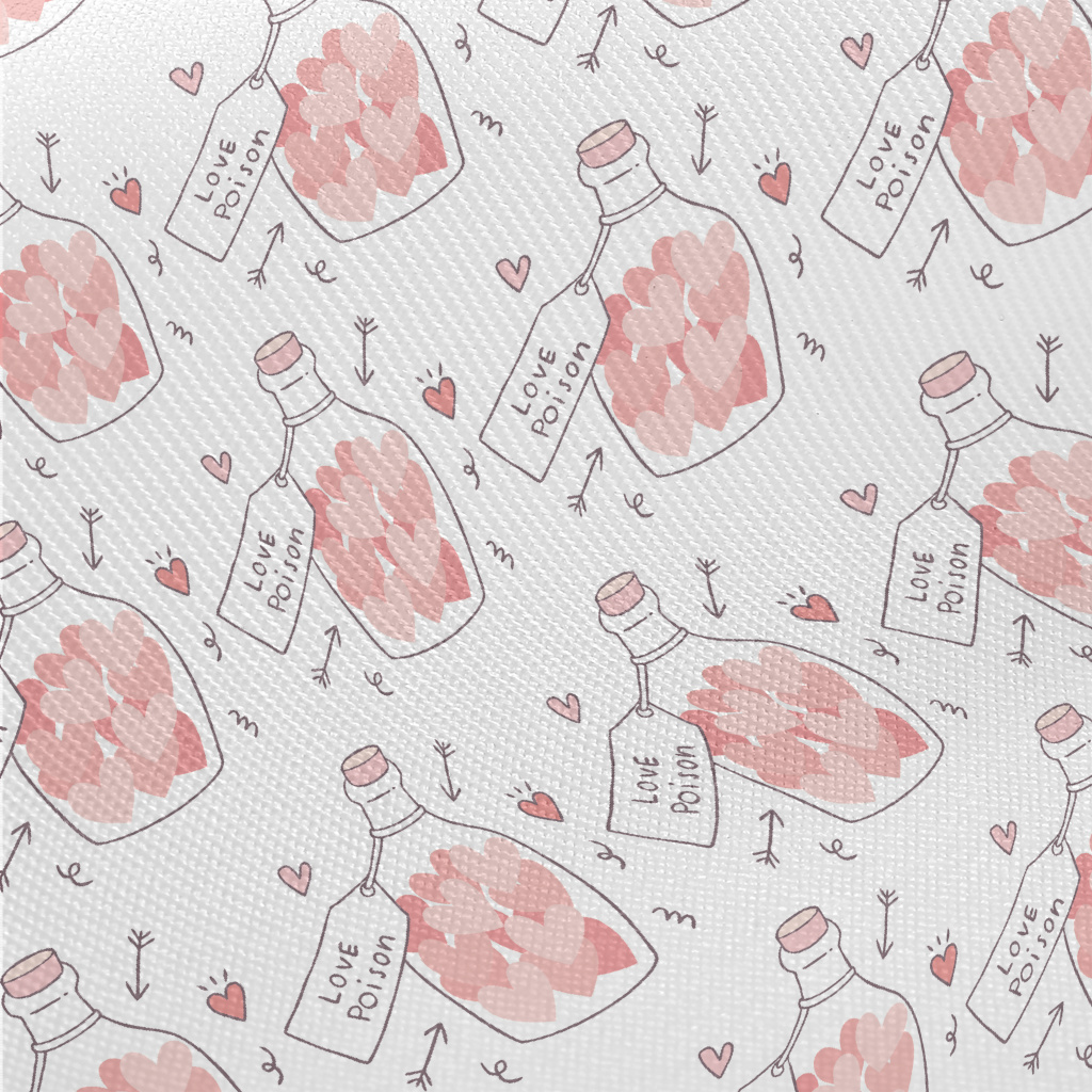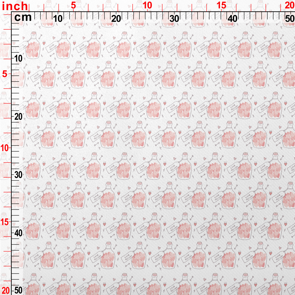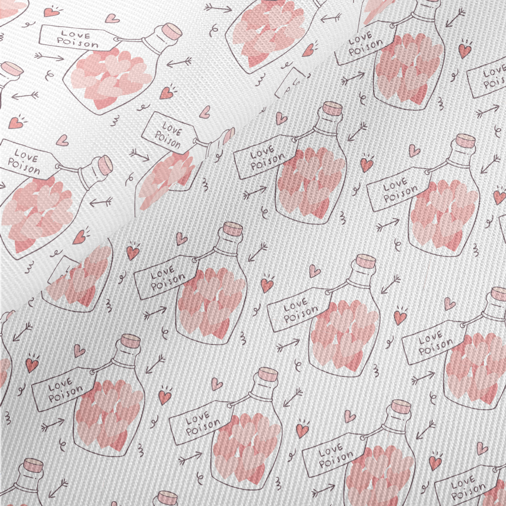 裝著粉色愛心的瓶子斜紋布(幅寬150公分)