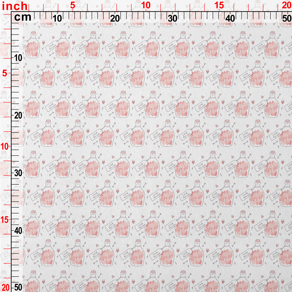 裝著粉色愛心的瓶子刷毛布(幅寬150公分)
