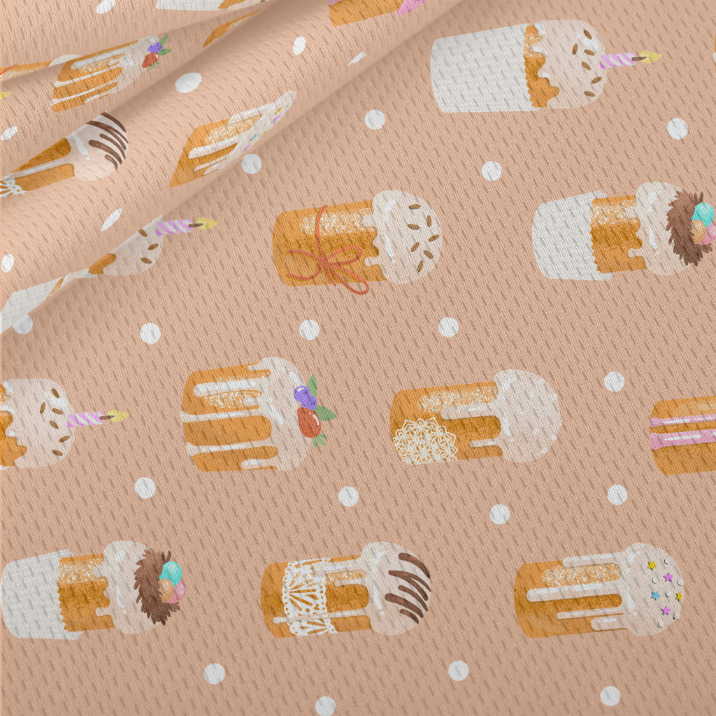 手繪風格香甜蛋糕鳥眼布(幅寬160公分)