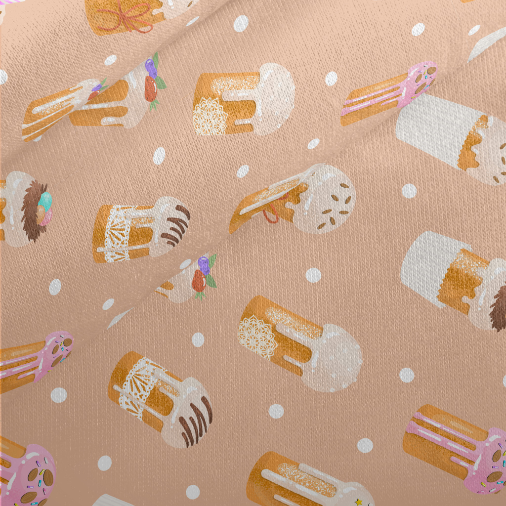 手繪風格香甜蛋糕刷毛布(幅寬150公分)