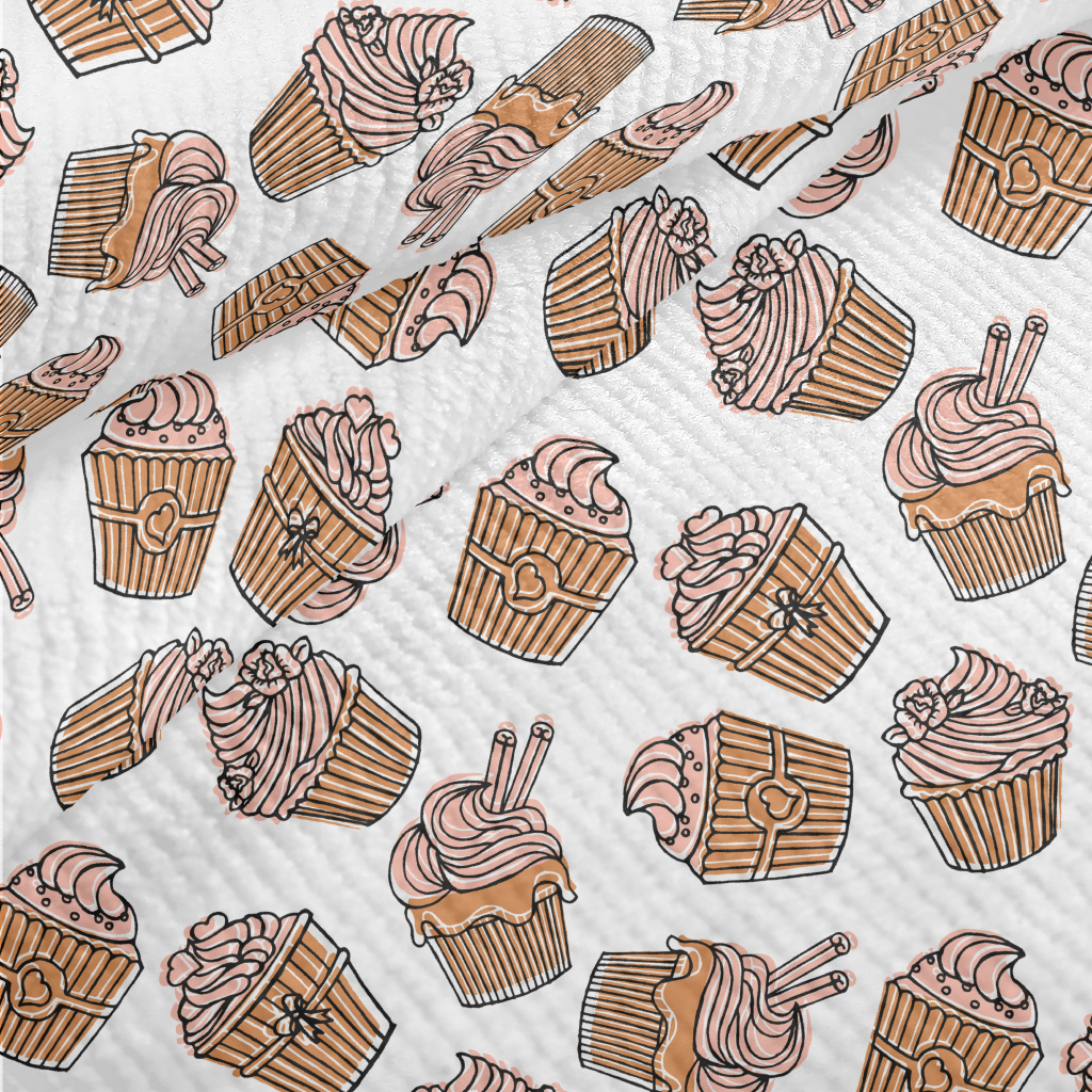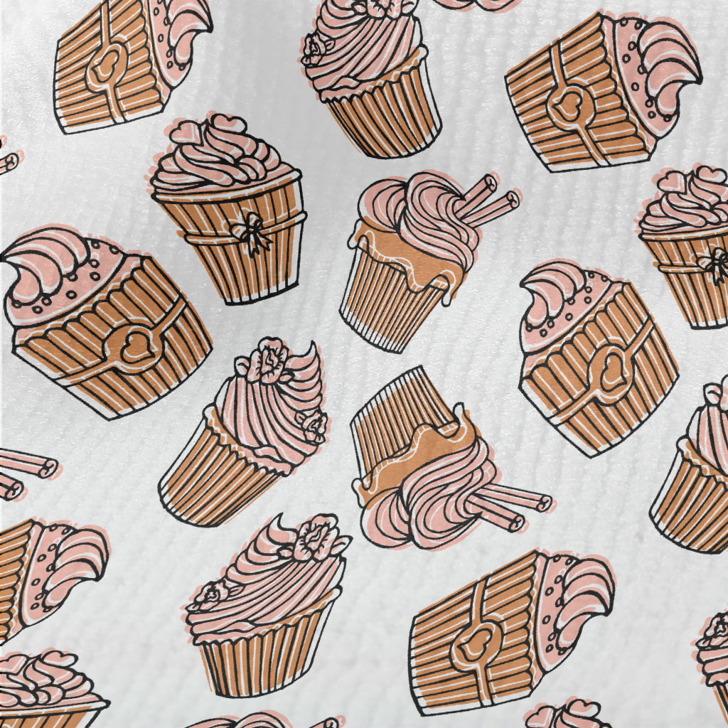 手繪粉色花朵杯子蛋糕毛巾布(幅寬160公分)