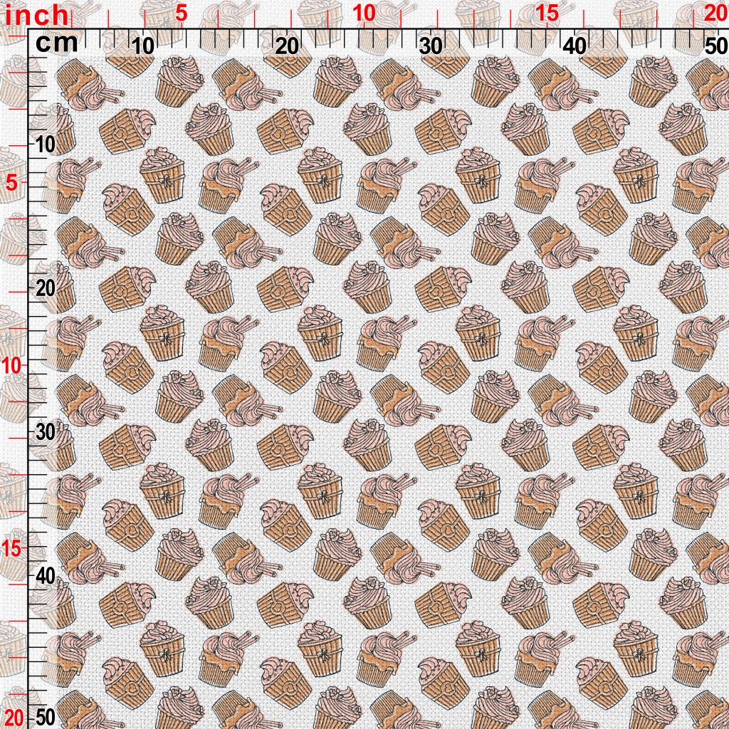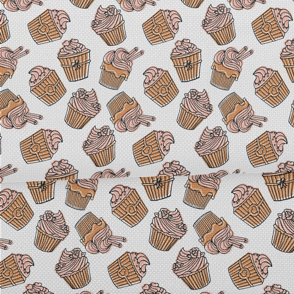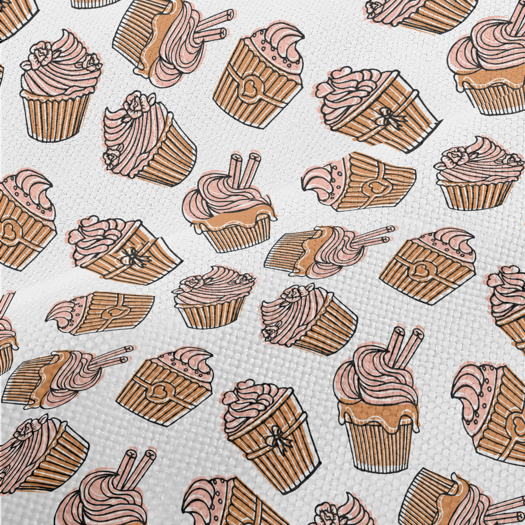 手繪粉色花朵杯子蛋糕麻布(幅寬150公分)
