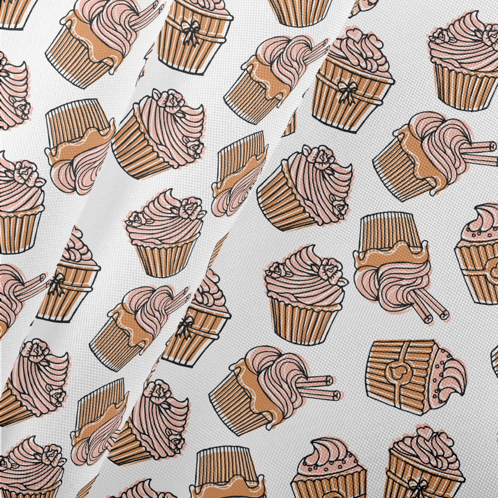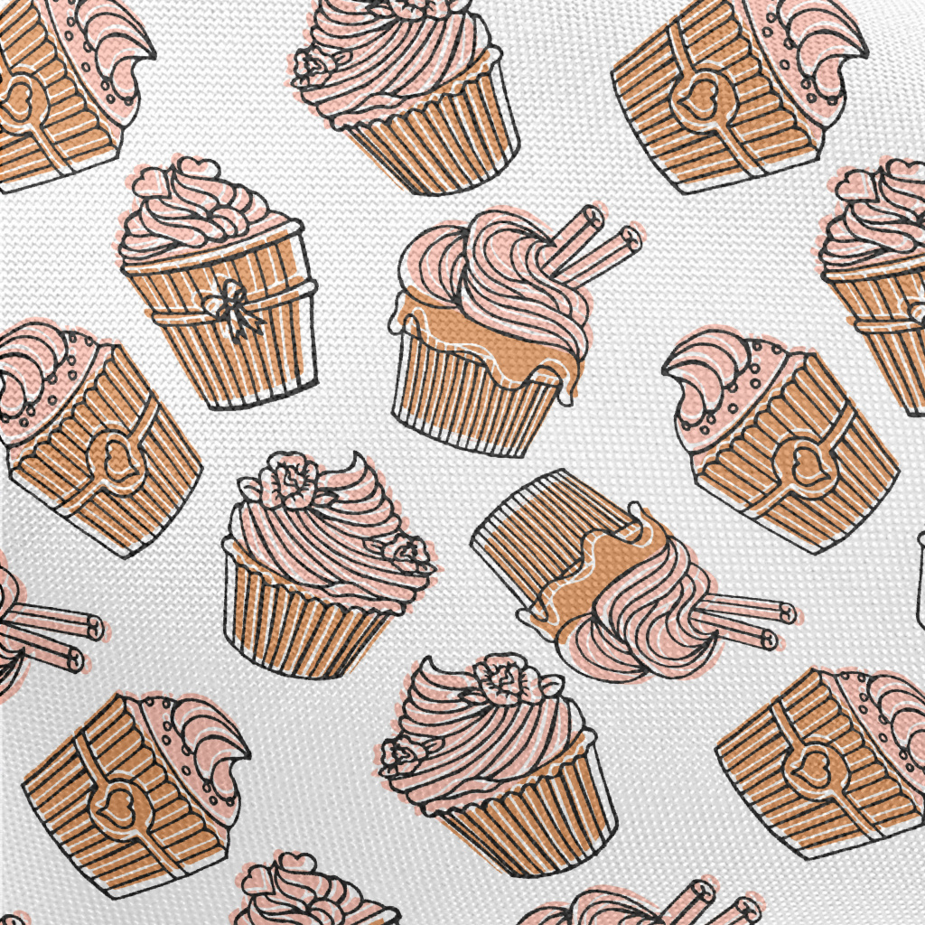手繪粉色花朵杯子蛋糕春亞紡(幅寬160公分)
