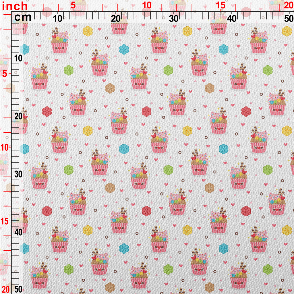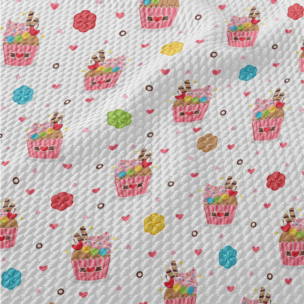 精緻杯子蛋糕與花朵愛心泡泡布(幅寬160公分)