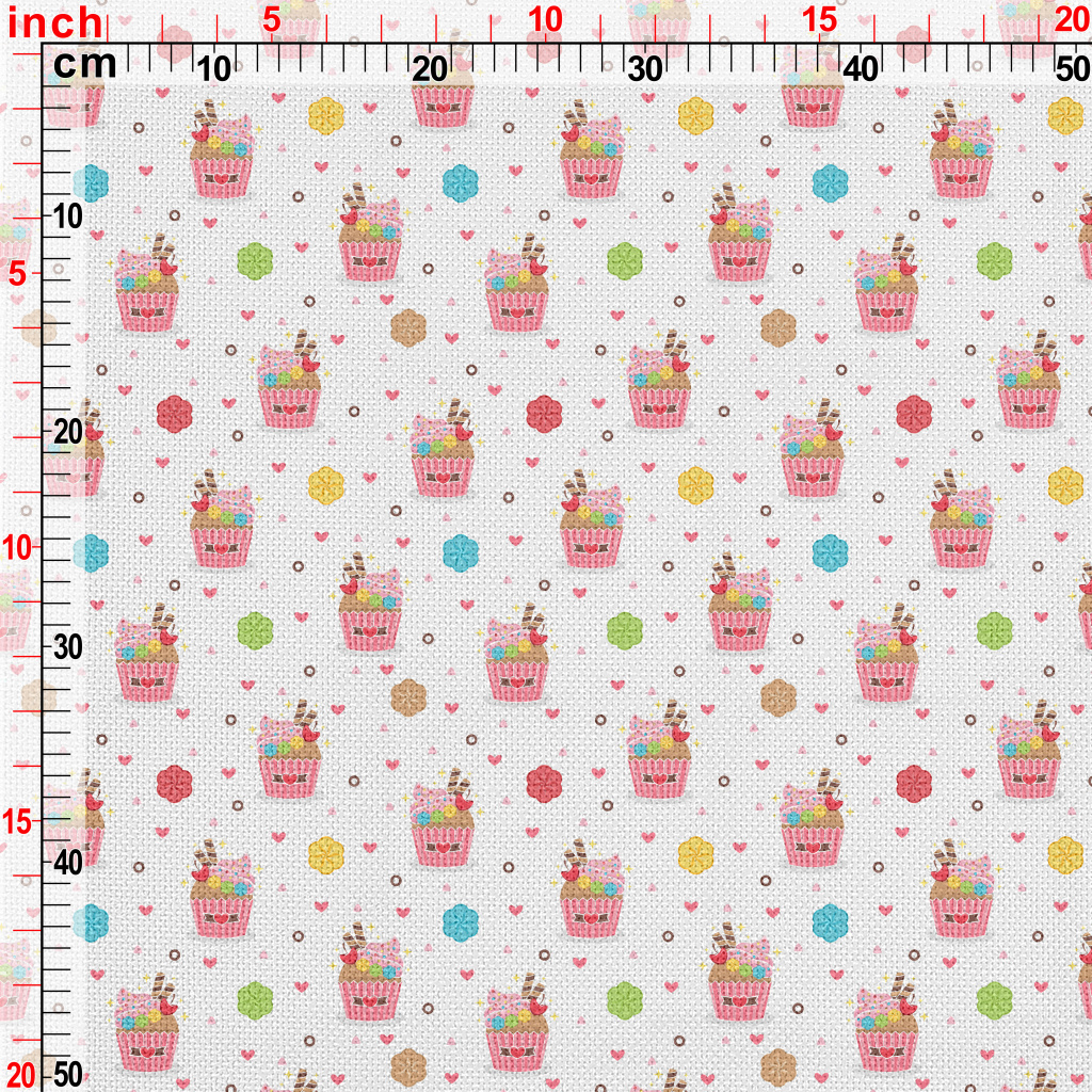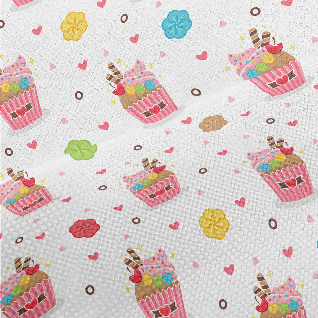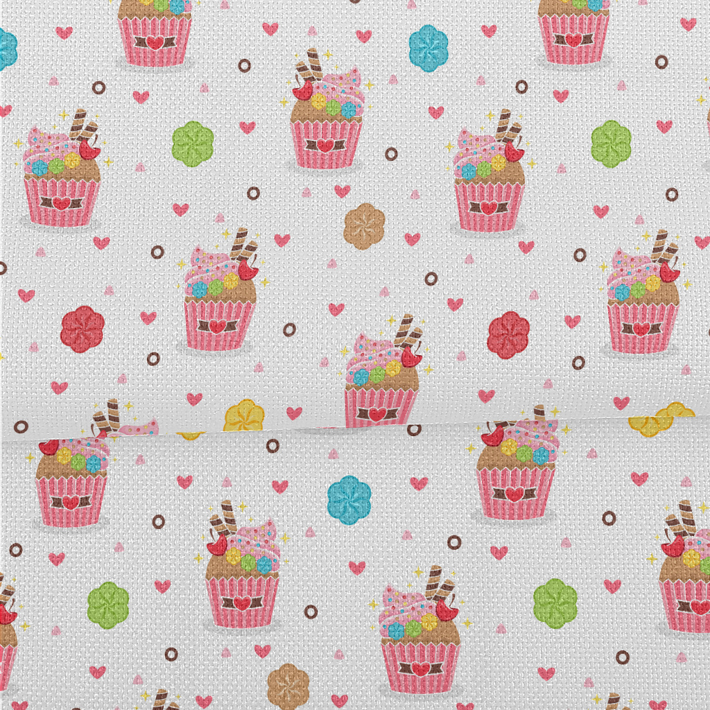 精緻杯子蛋糕與花朵愛心麻布(幅寬150公分)