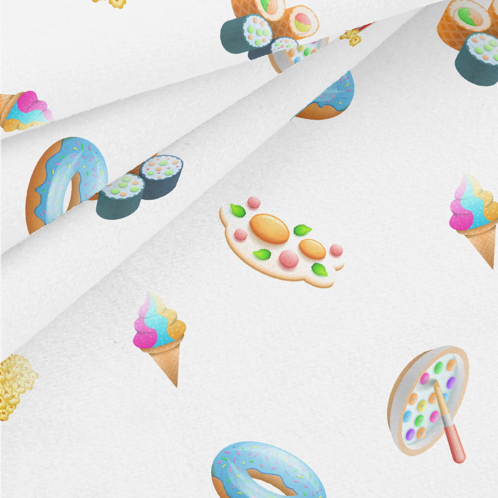 各種彩色美式與日式食物水晶絨(幅寬160公分)