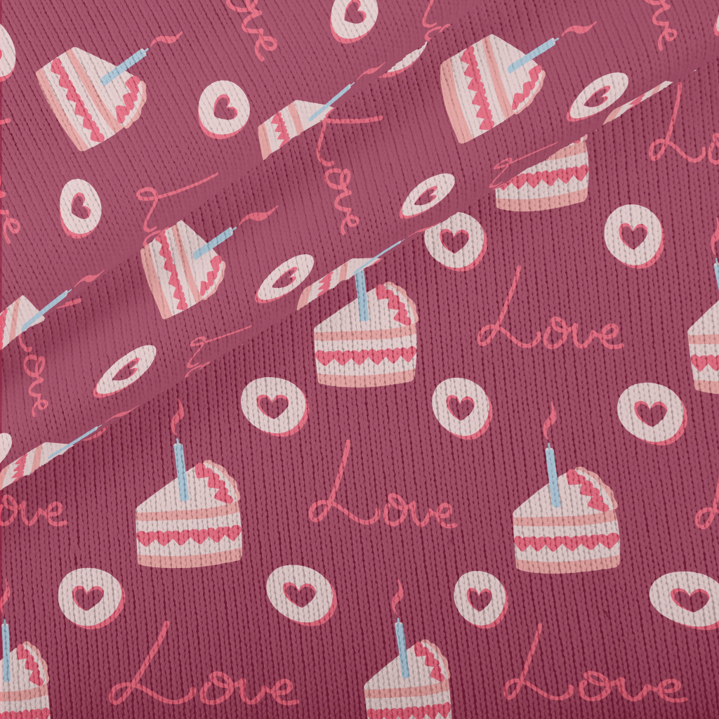 粉色蠟燭蛋糕和愛心仿毛衣布(幅寬150公分)