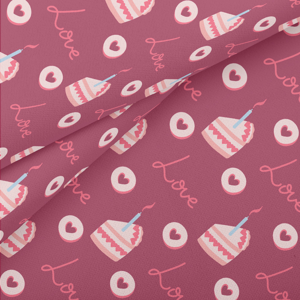 粉色蠟燭蛋糕和愛心薄棉布(幅寬150公分)