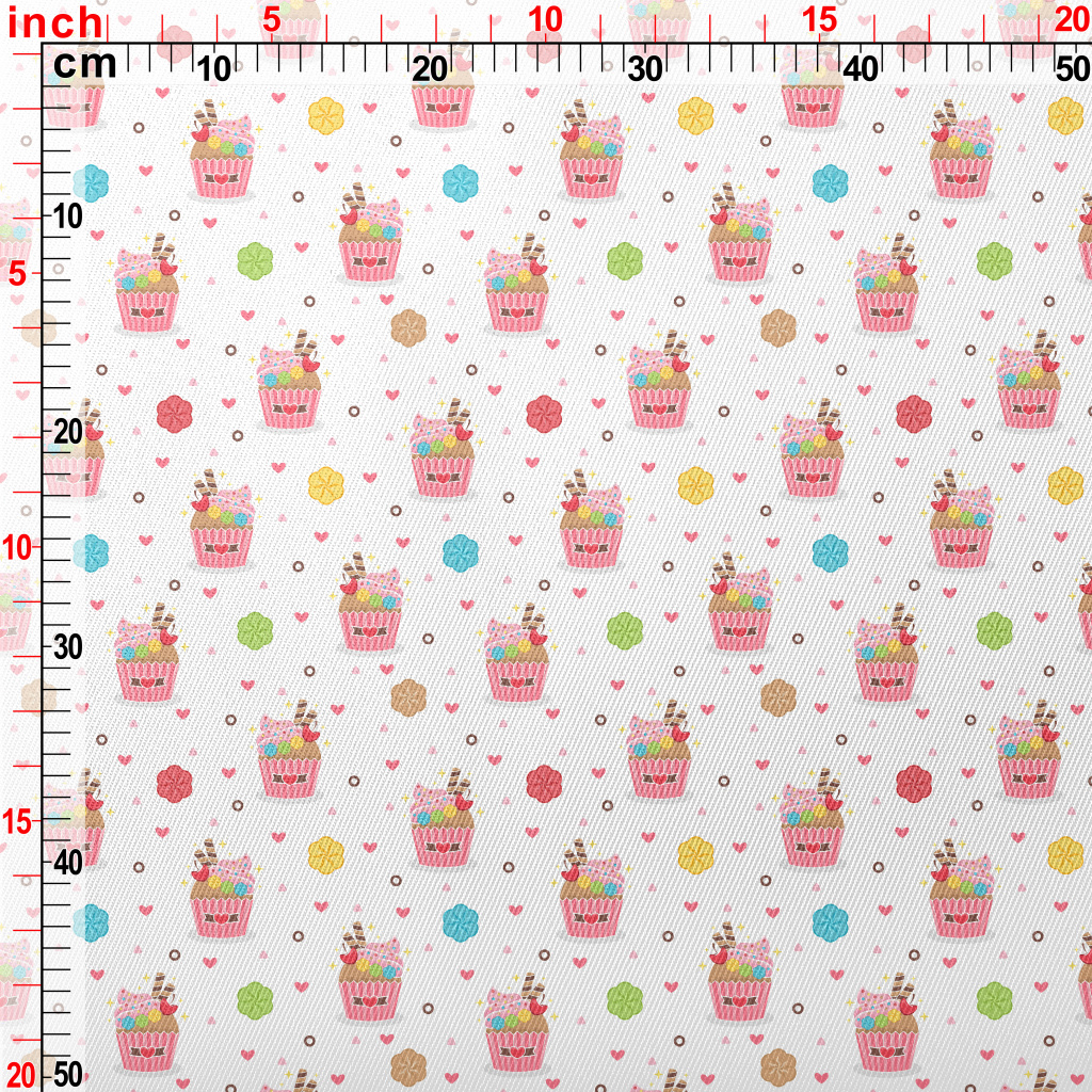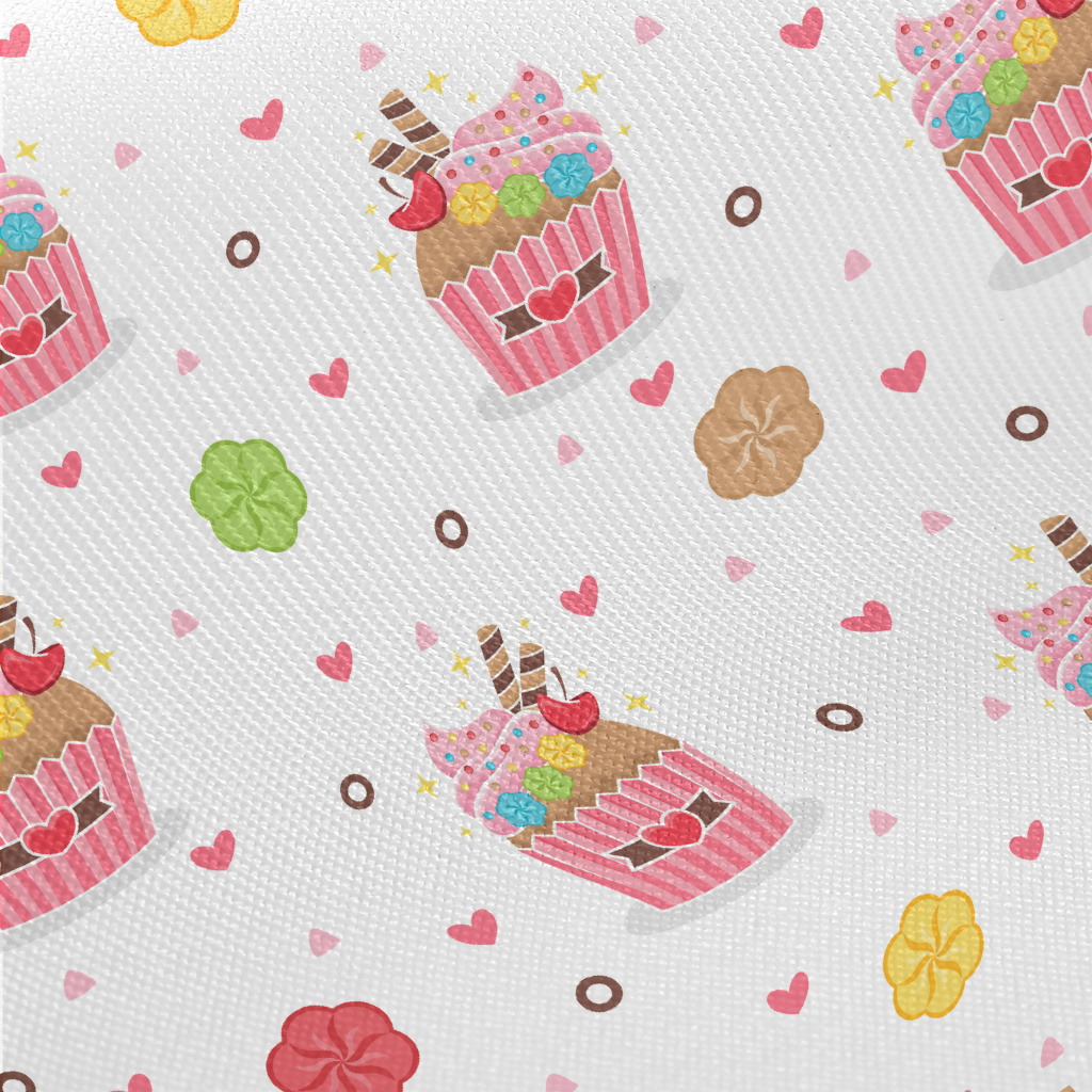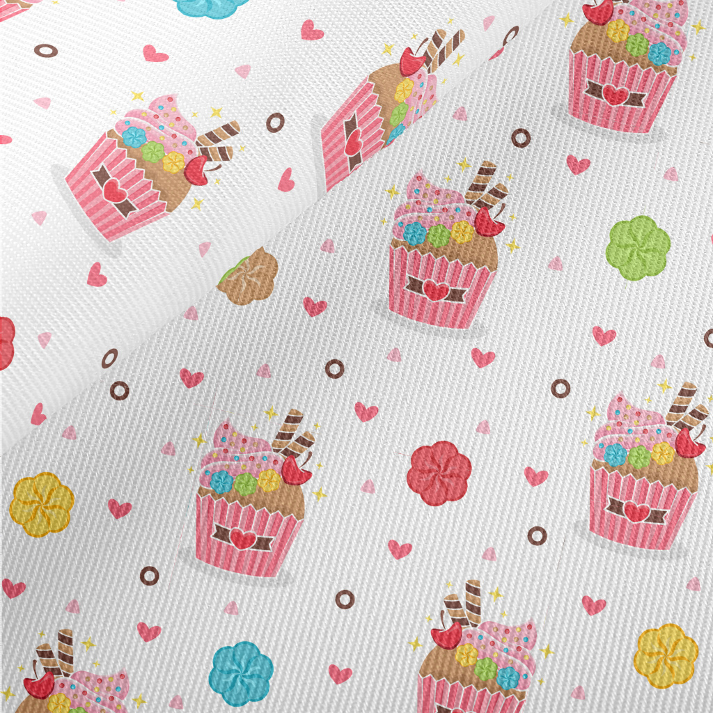 精緻杯子蛋糕與花朵愛心厚棉布(幅寬150公分)