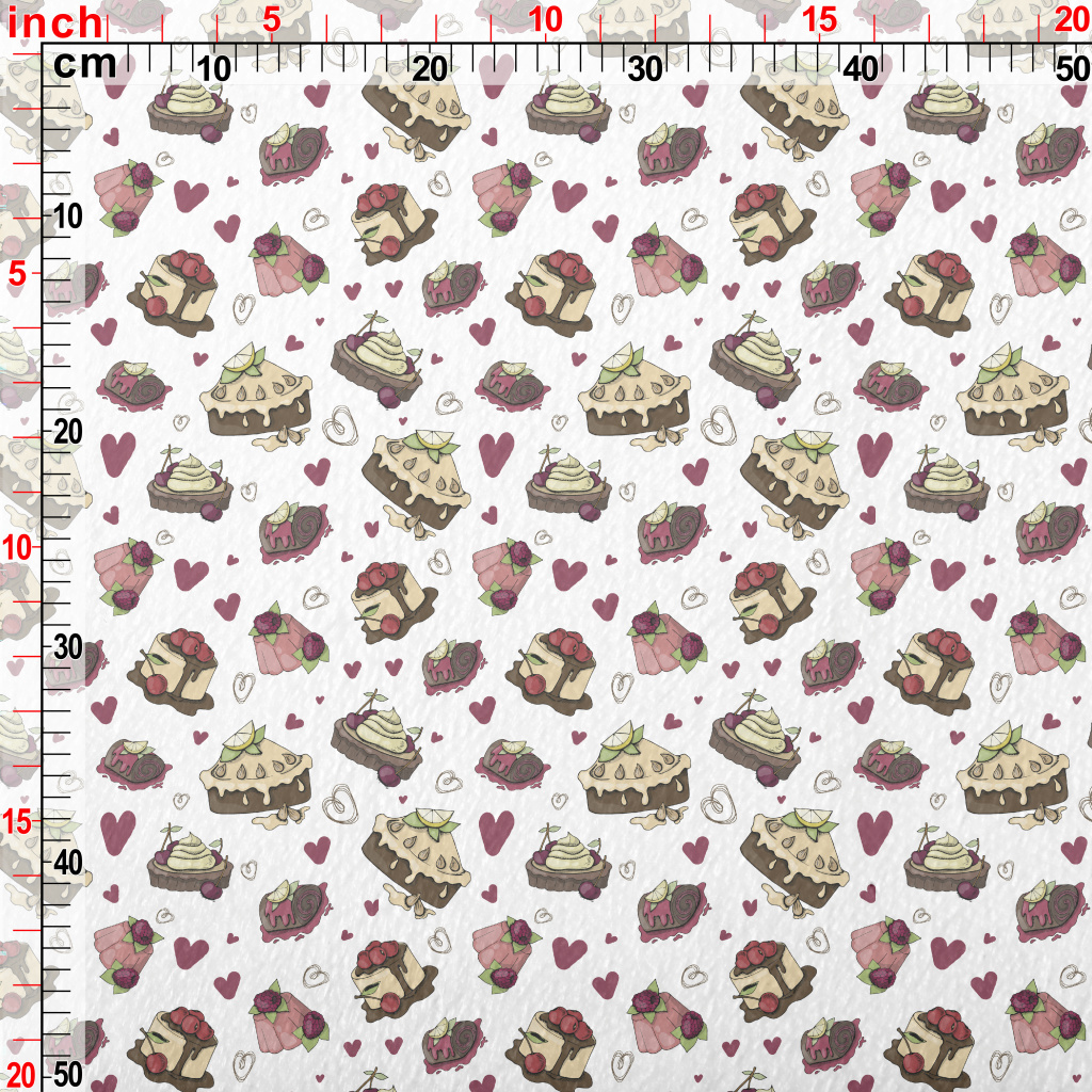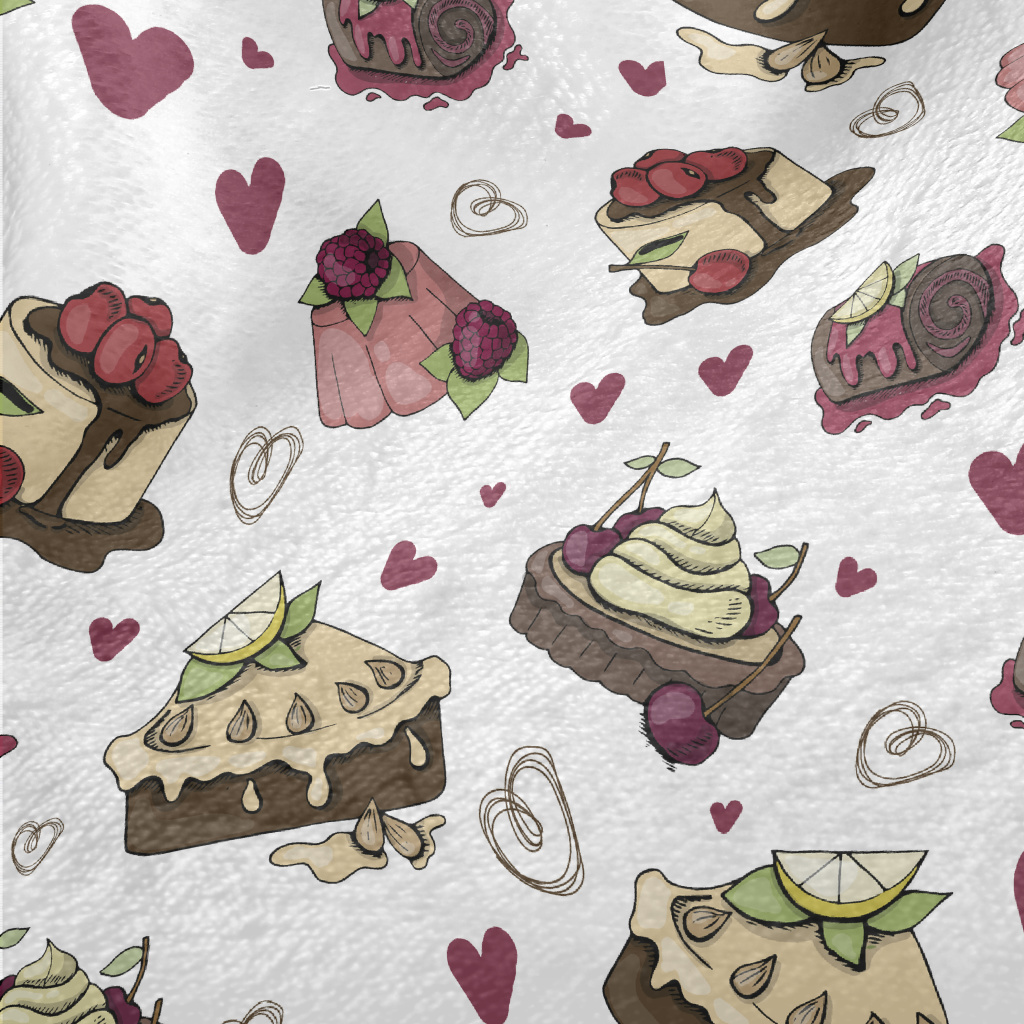 各種口味蛋糕和愛心法蘭絨(幅寬150公分)
