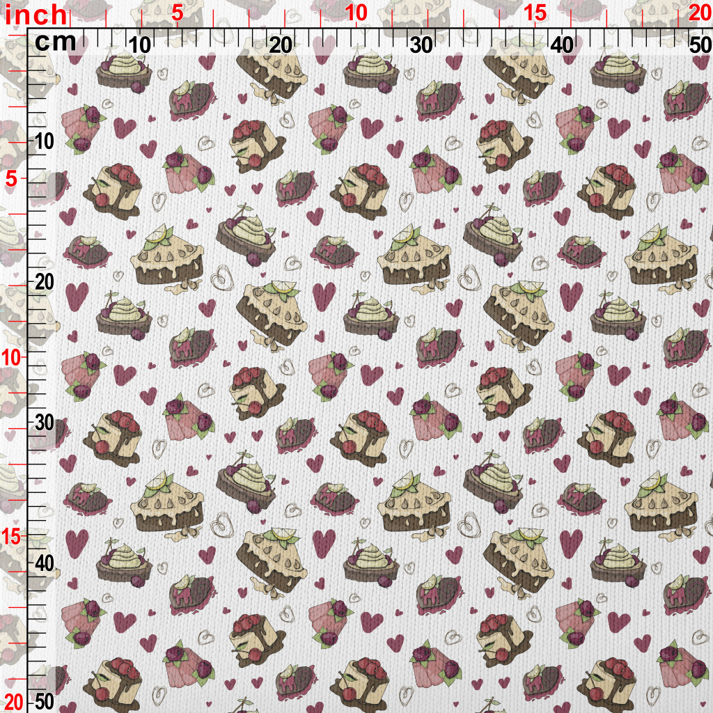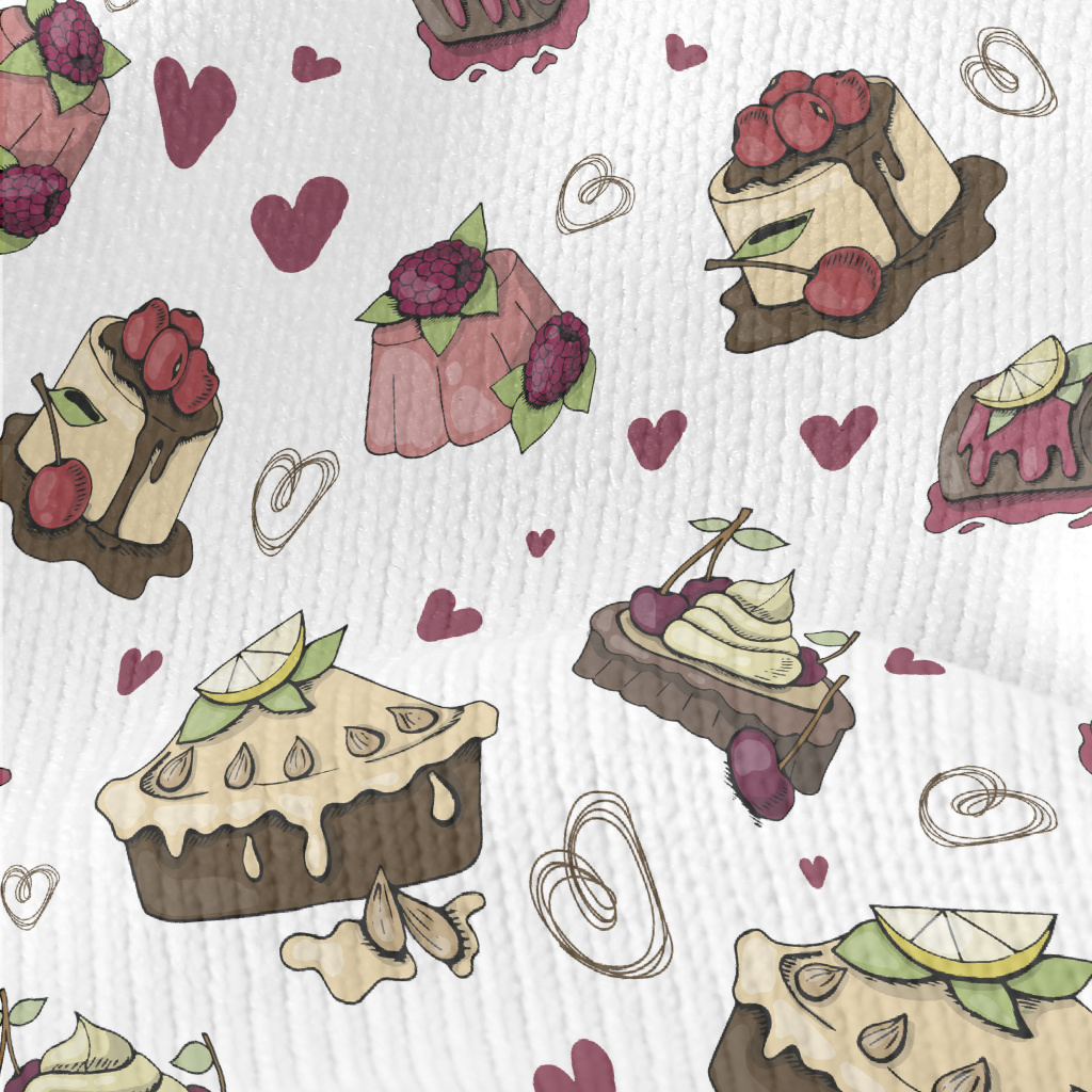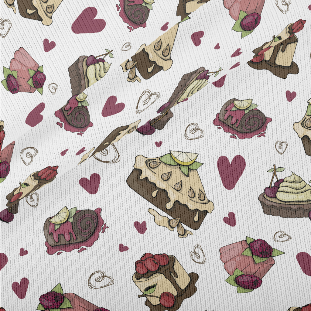 各種口味蛋糕和愛心仿毛衣布(幅寬150公分)