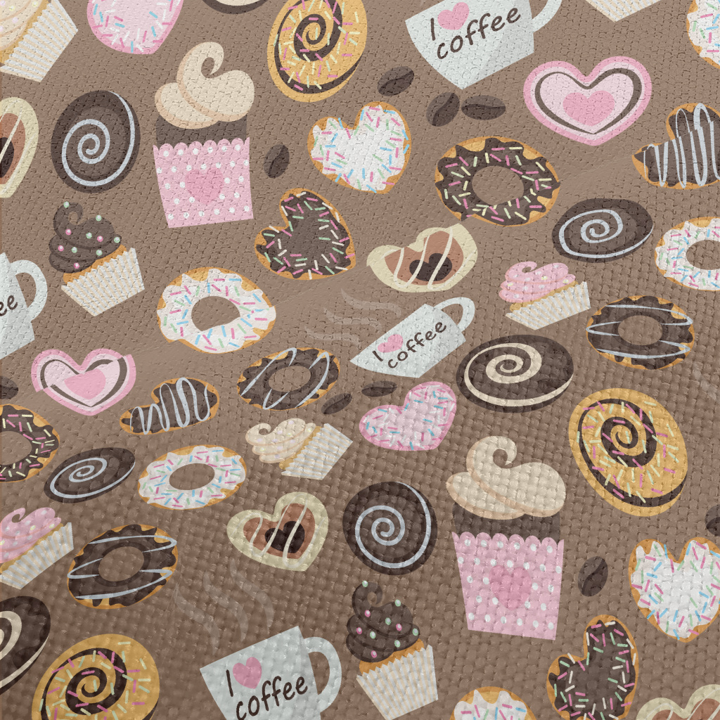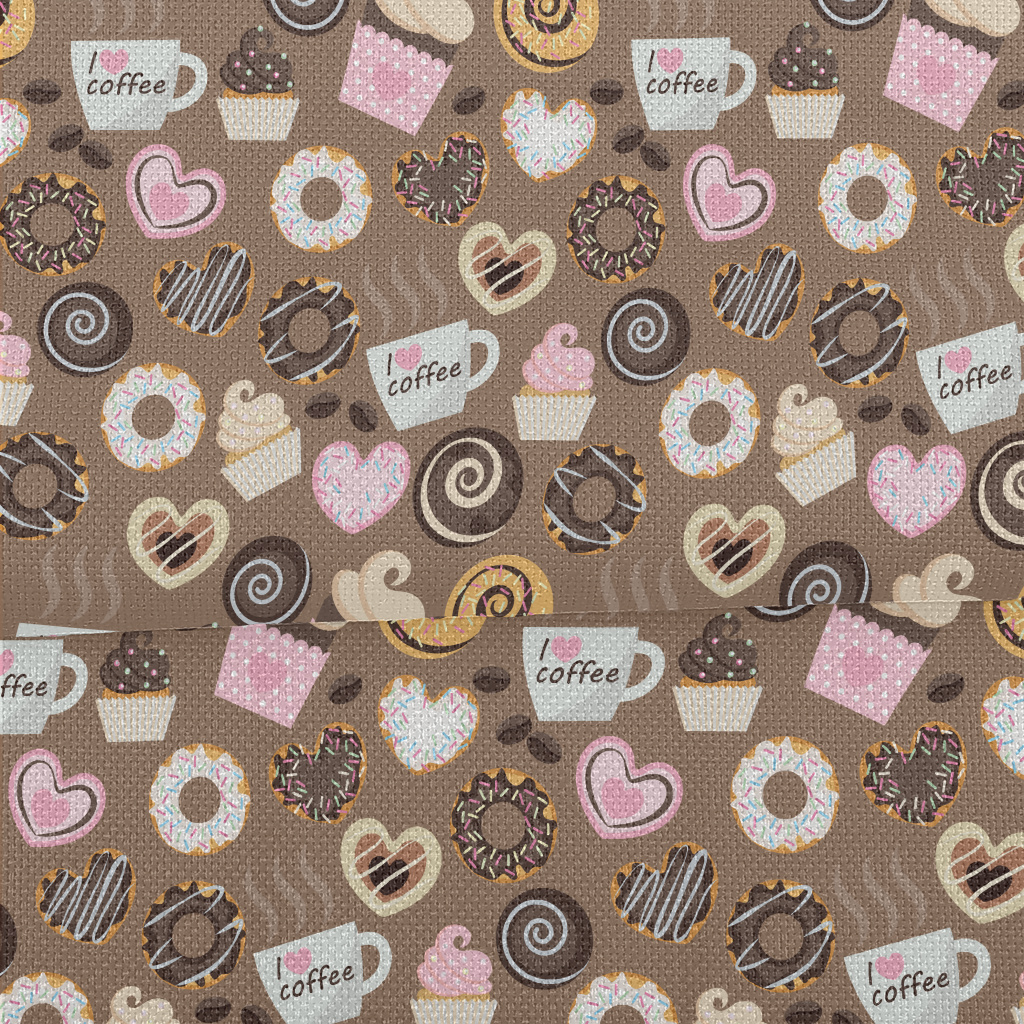 各式甜甜圈蛋糕咖啡麻布(幅寬150公分)