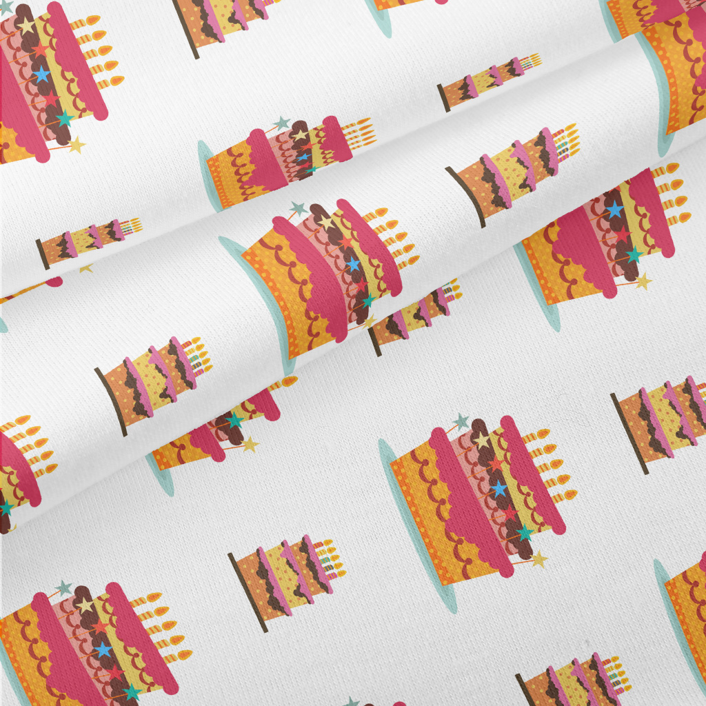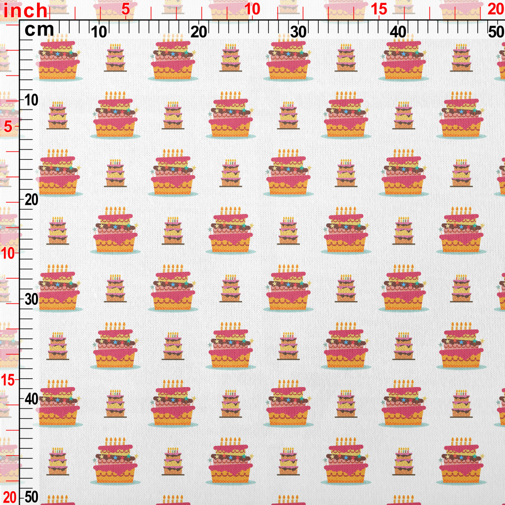 彩色三層蠟燭蛋糕仿棉布(幅寬150公分)