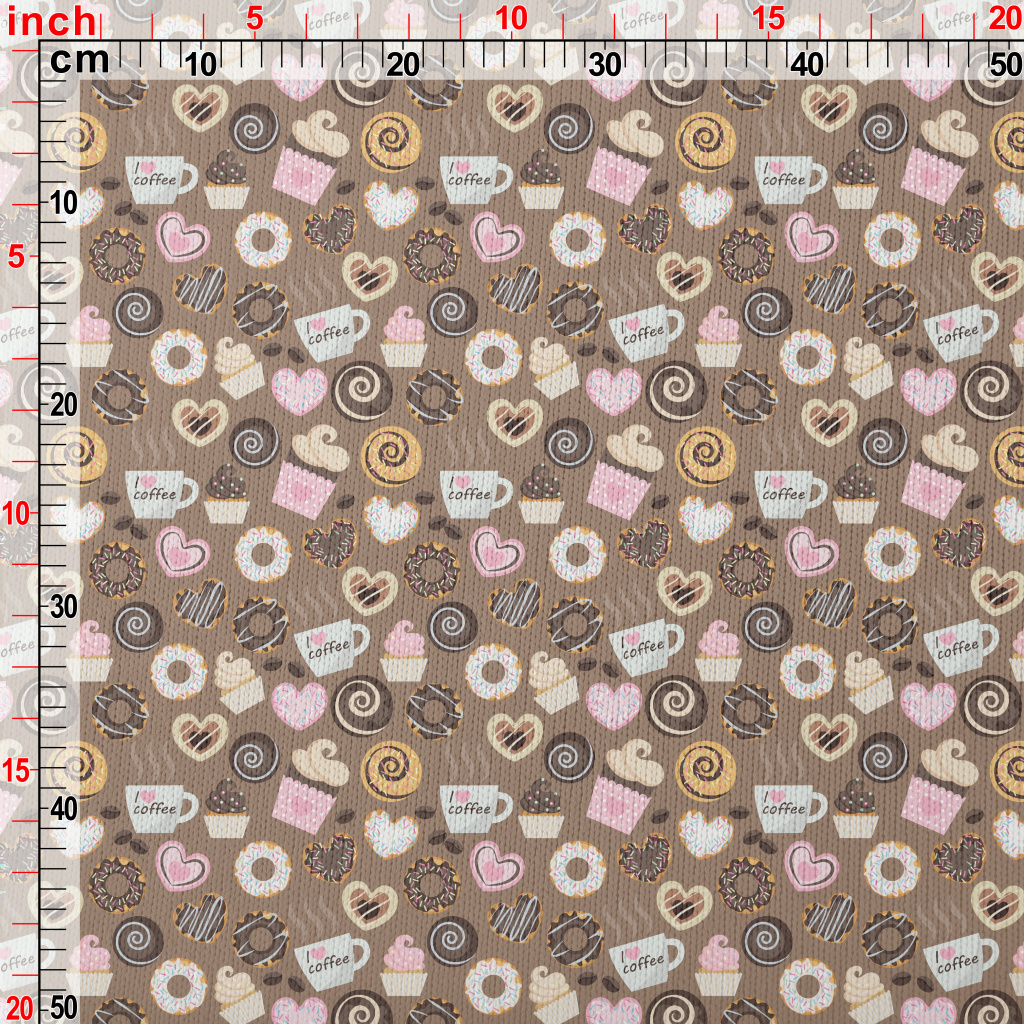 各式甜甜圈蛋糕咖啡仿毛衣布(幅寬150公分)