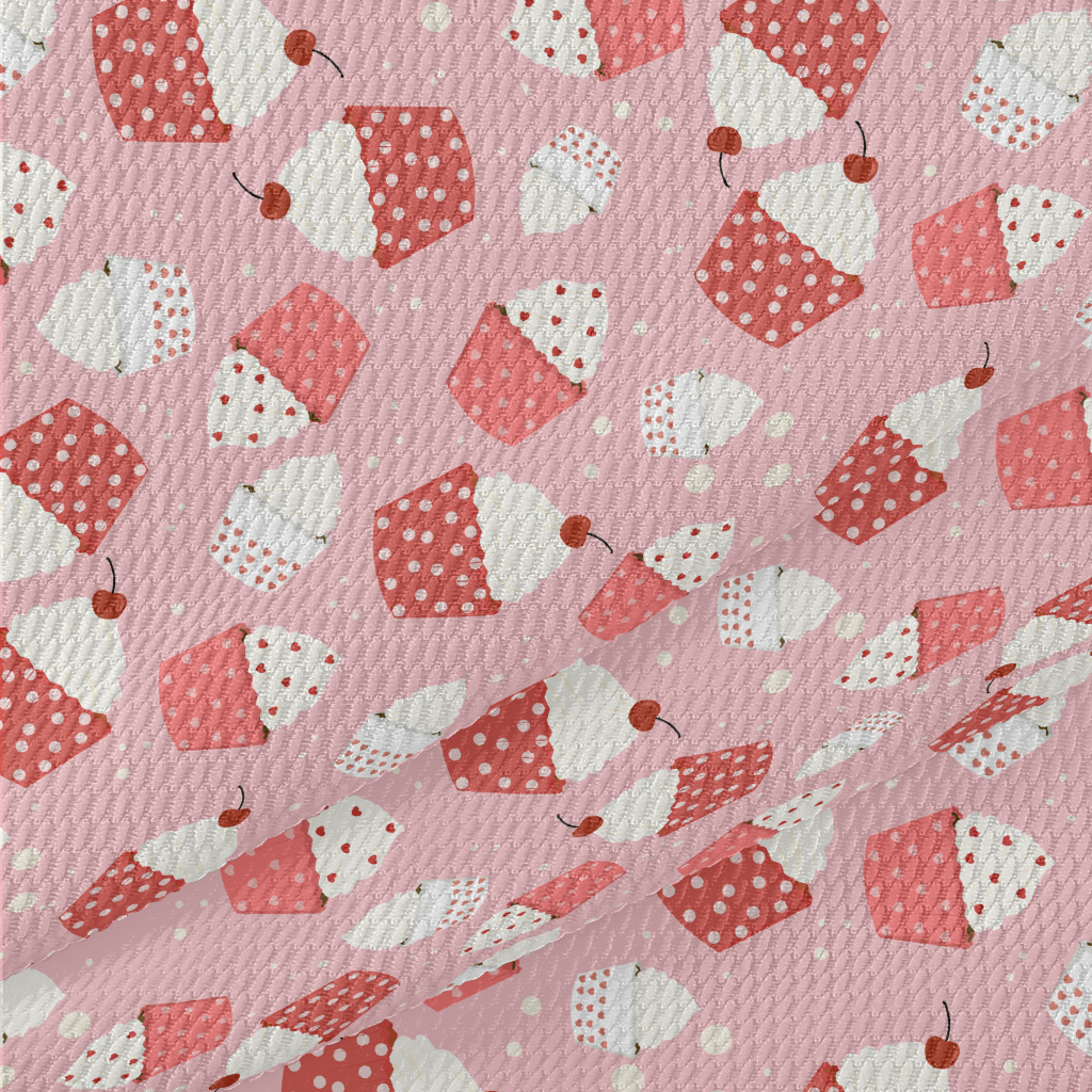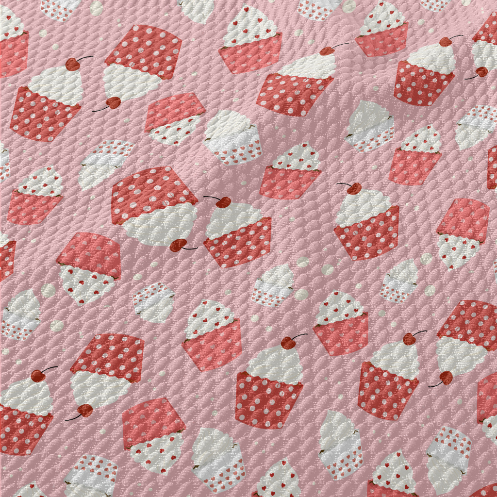 愛心與櫻桃杯子蛋糕泡泡布(幅寬160公分)