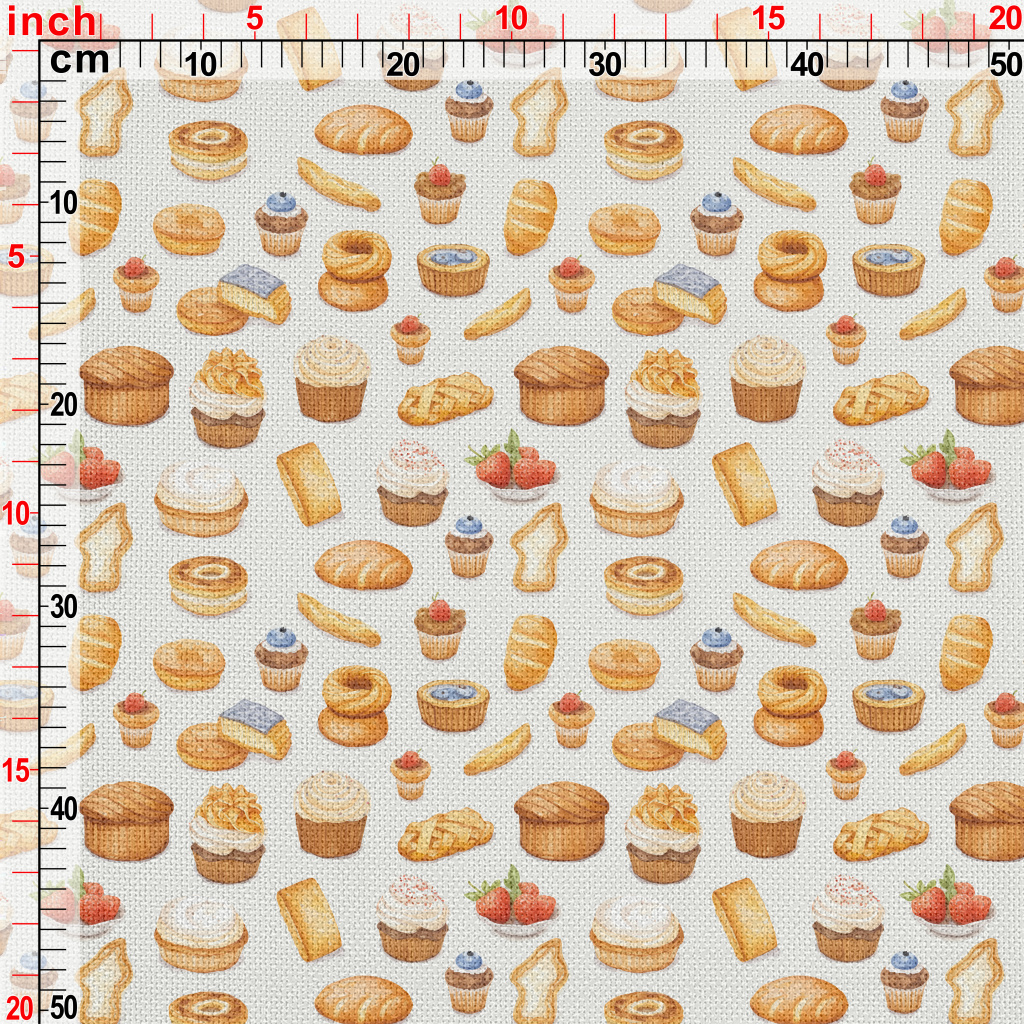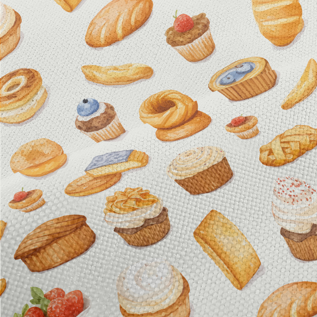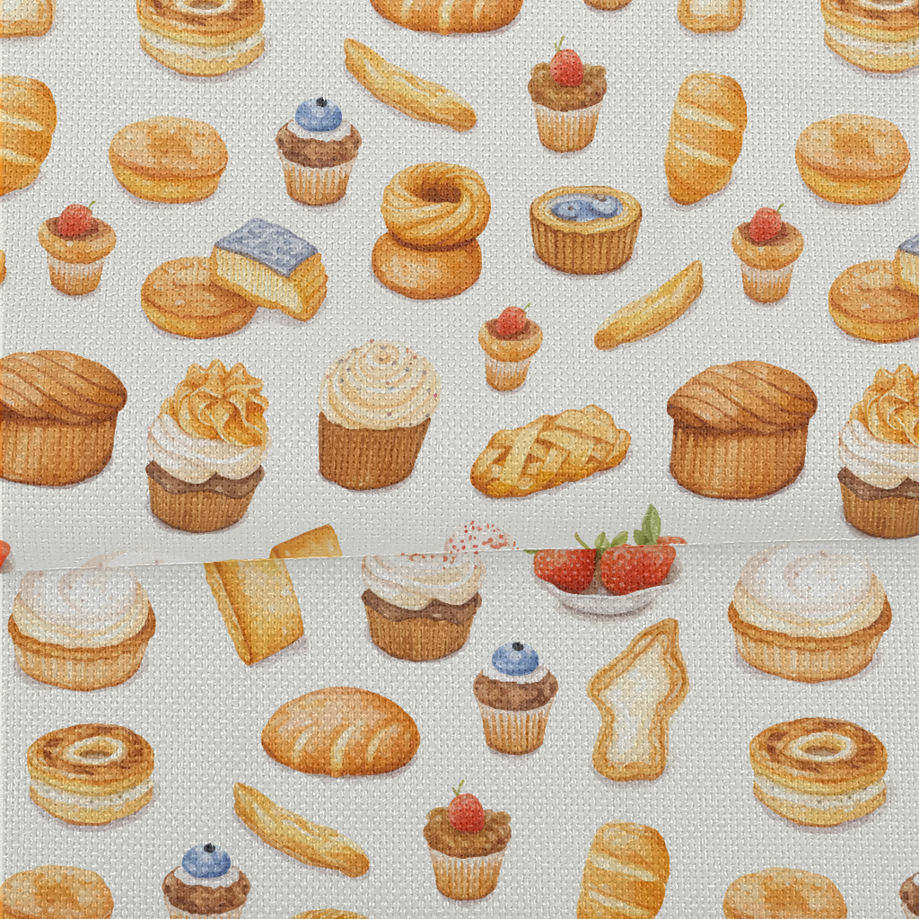 手繪水彩麵包與蛋糕麻布(幅寬150公分)
