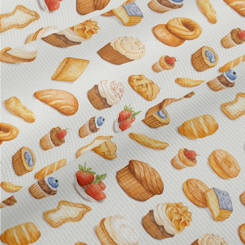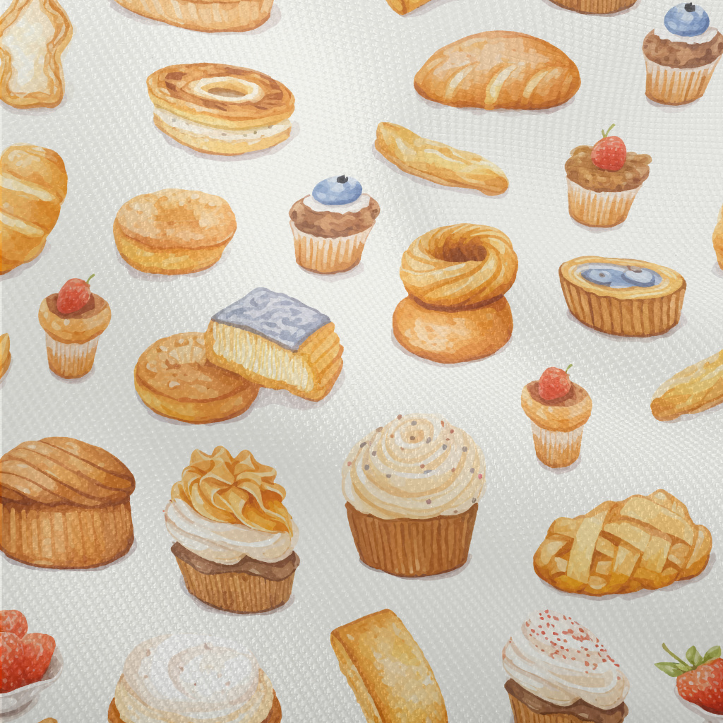手繪水彩麵包與蛋糕雙斜布(幅寬150公分)