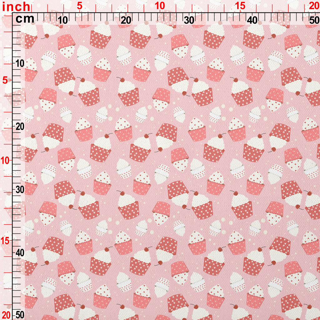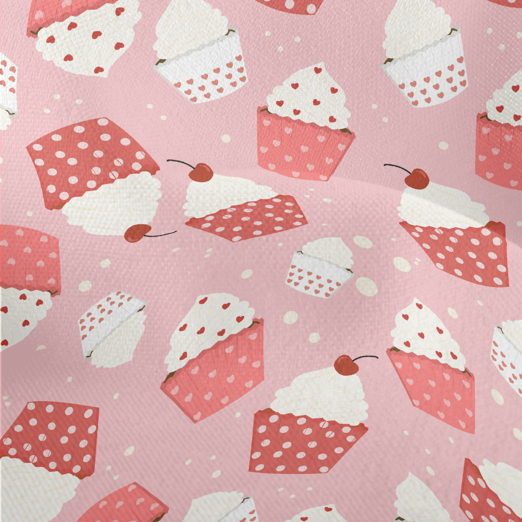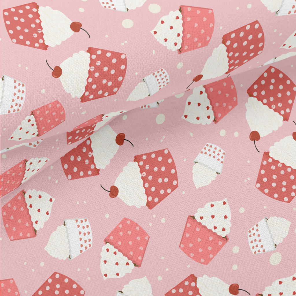 愛心與櫻桃杯子蛋糕竹節麻(幅寬150公分)