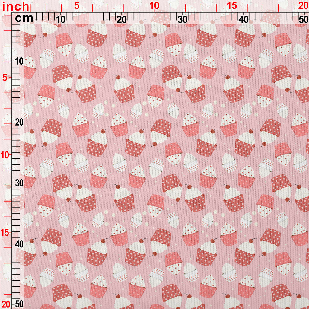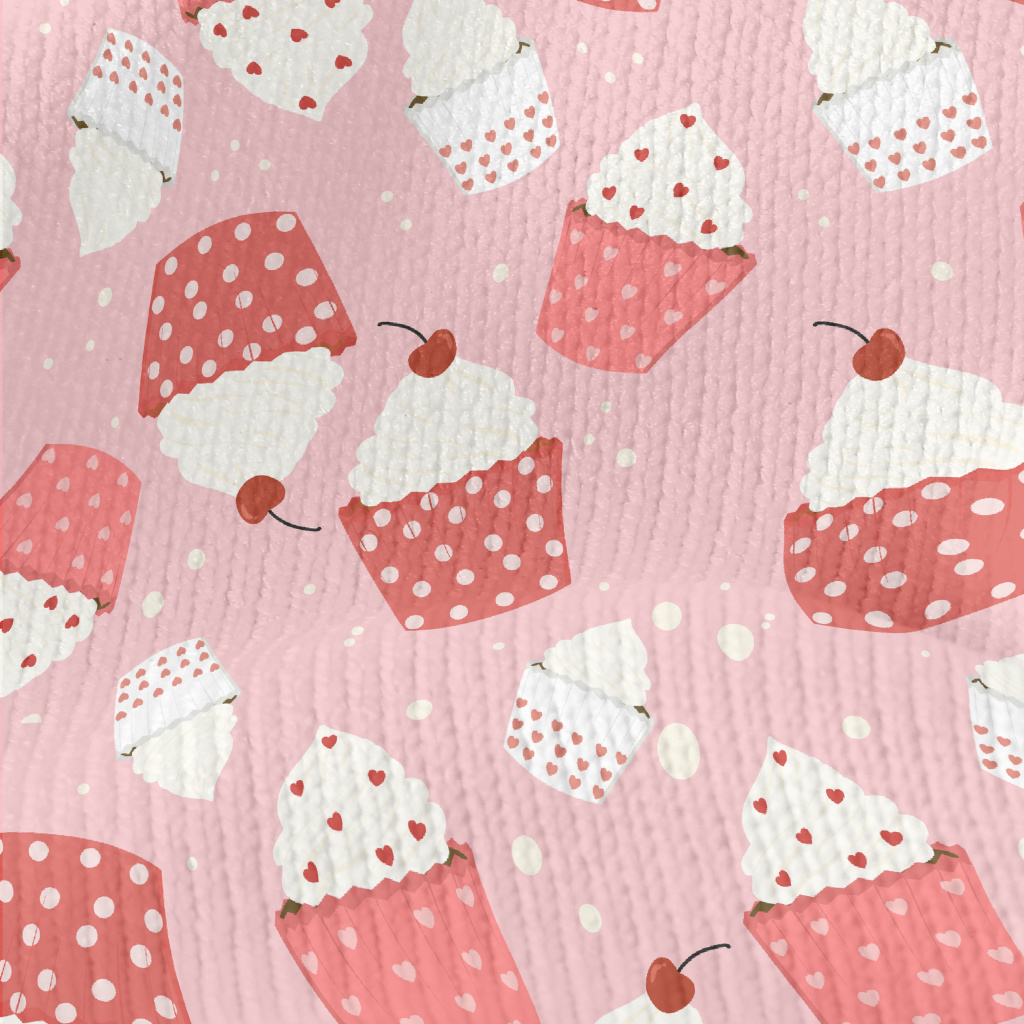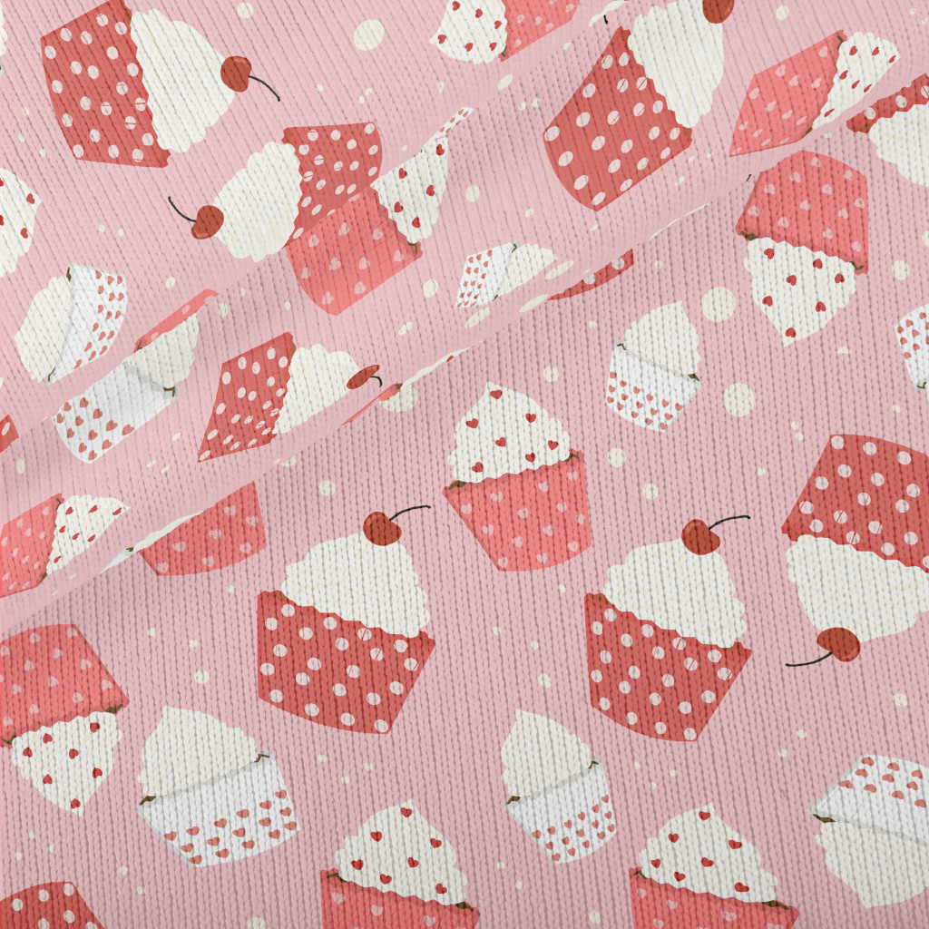 愛心與櫻桃杯子蛋糕仿毛衣布(幅寬150公分)
