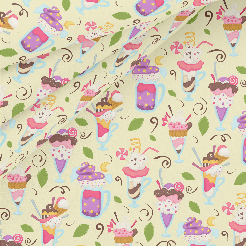 各種豪華冰品杯和葉子水晶絨(幅寬160公分)