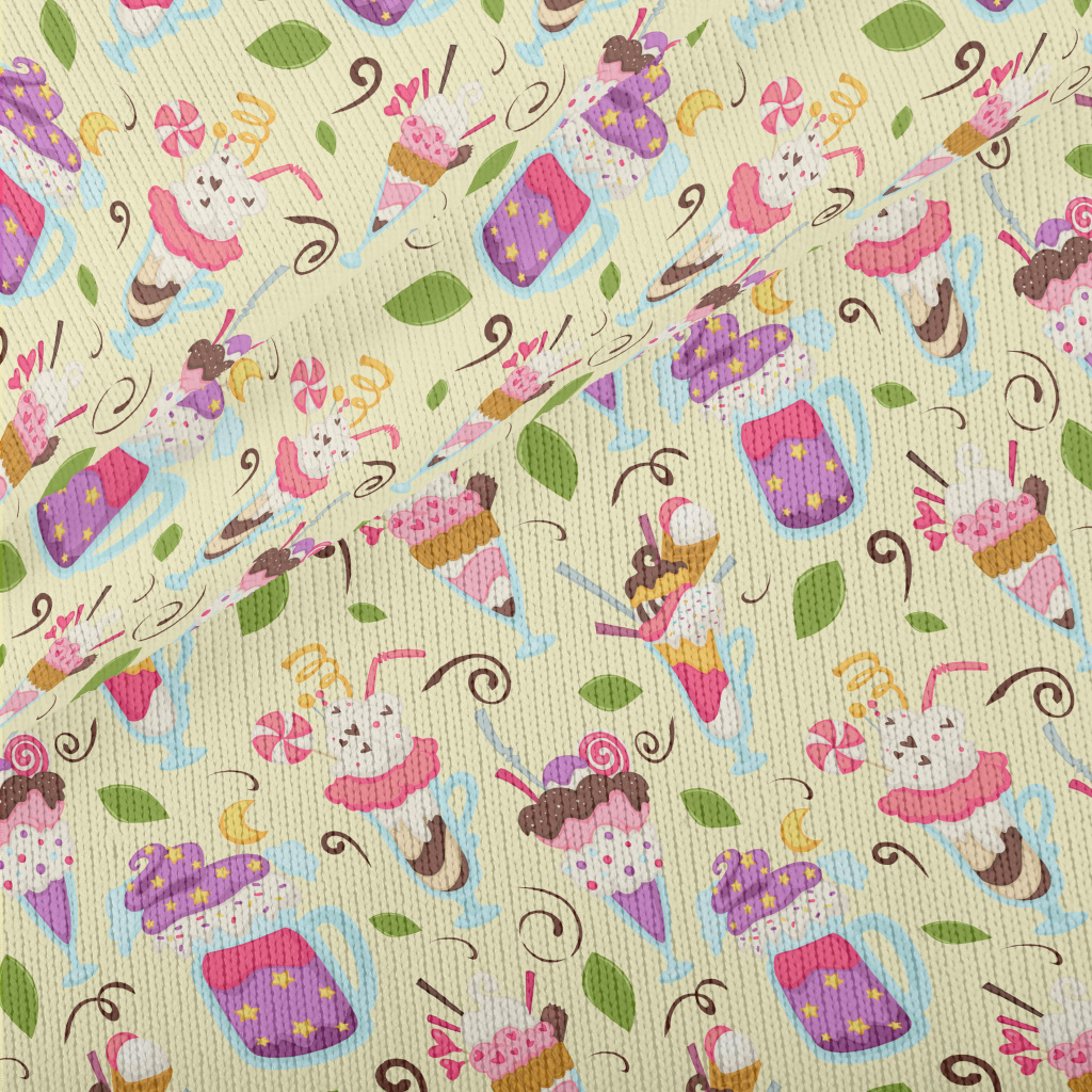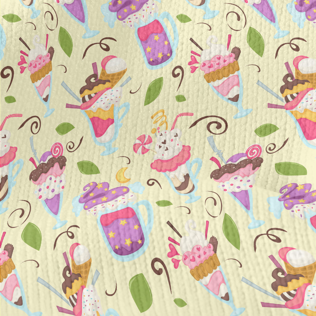 各種豪華冰品杯和葉子仿毛衣布(幅寬150公分)