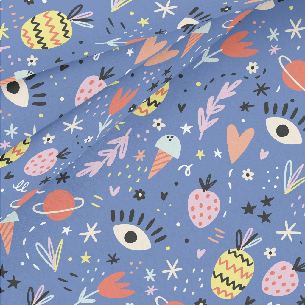 塗鴉花朵星球水果眼睛水晶絨(幅寬160公分)