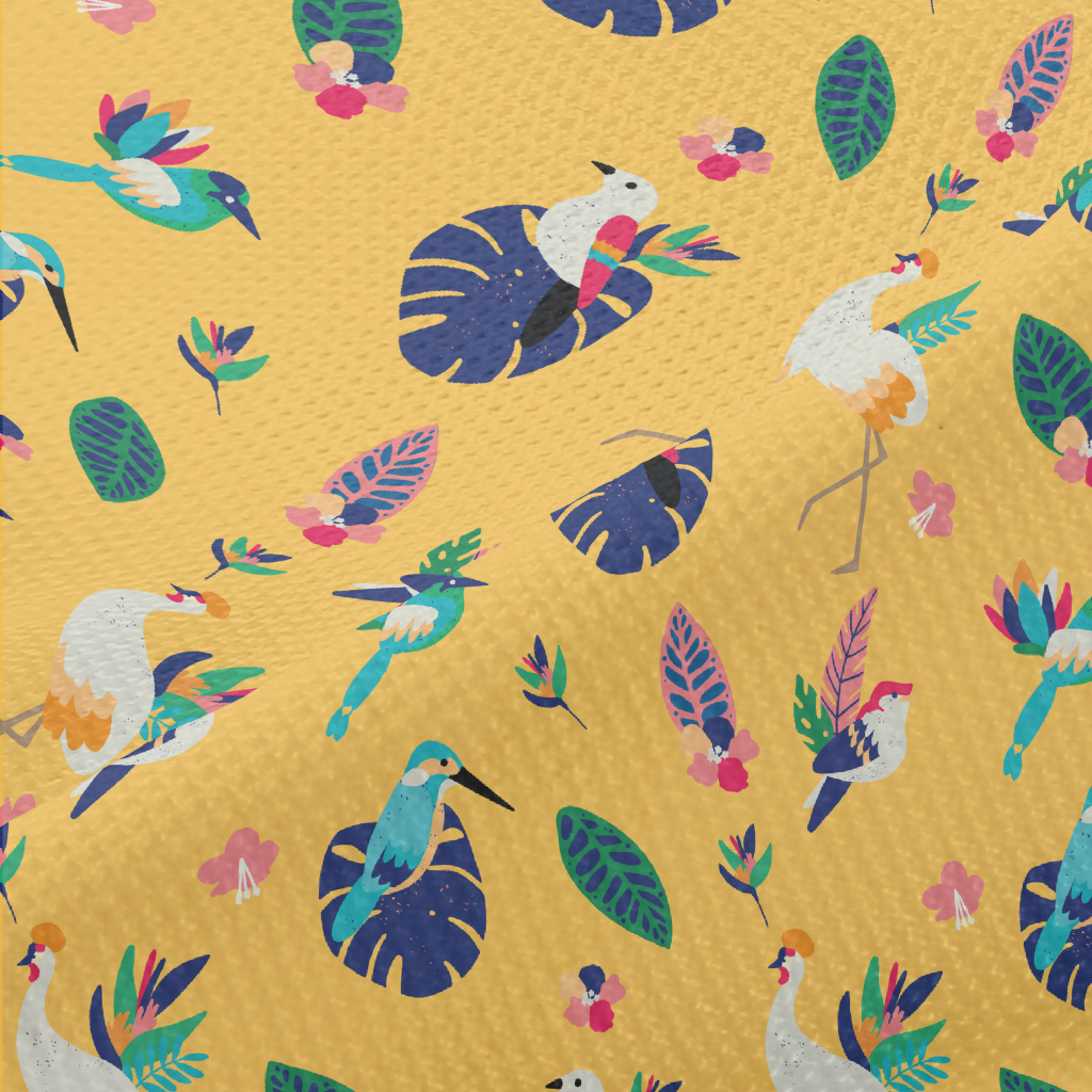 異國情調的鳥類和植物高爾布(幅寬180公分)