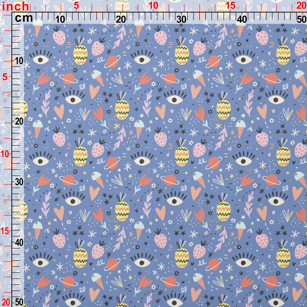 塗鴉花朵星球水果眼睛竹節麻(幅寬150公分)