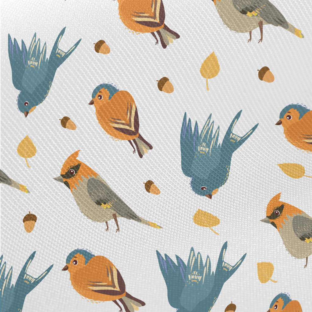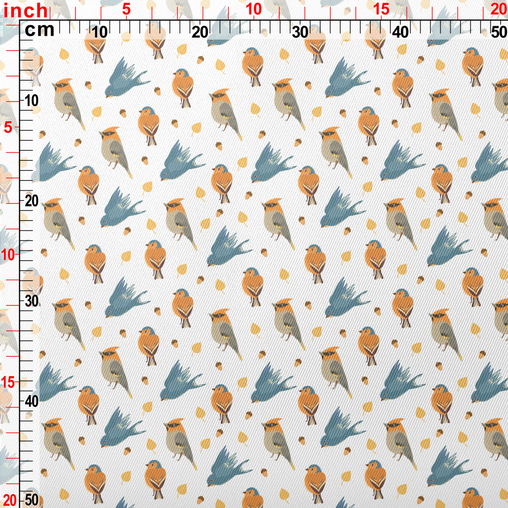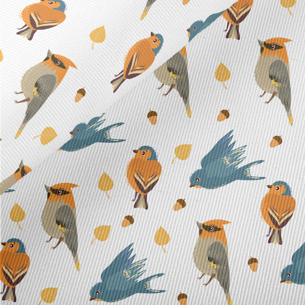 手繪可愛小鳥和松果斜紋布(幅寬150公分)